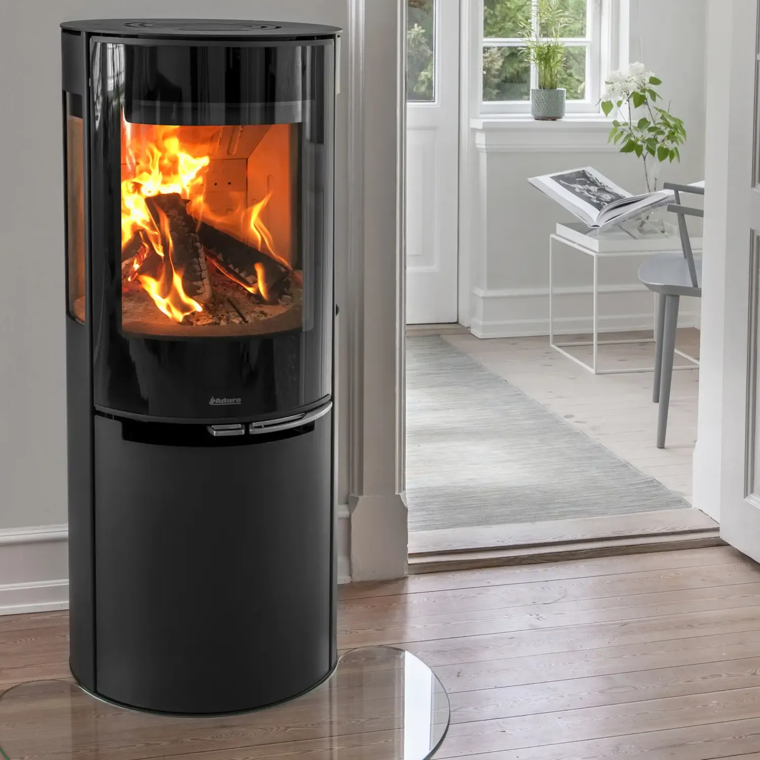 Der er mulighed for at tilslutte ekstern lufttilførsel. Denne teknik bygger på, at ovnen trækker luft ind udefra, i stedet for det rum hvor den er placeret. Ydermere får du også en hybridovn med integreret Aduro-tronic system. Når du har aktiveret system-automatikken, sker reguleringen af den primære lufttilførsel automatisk, uden du skal løfte en finger.