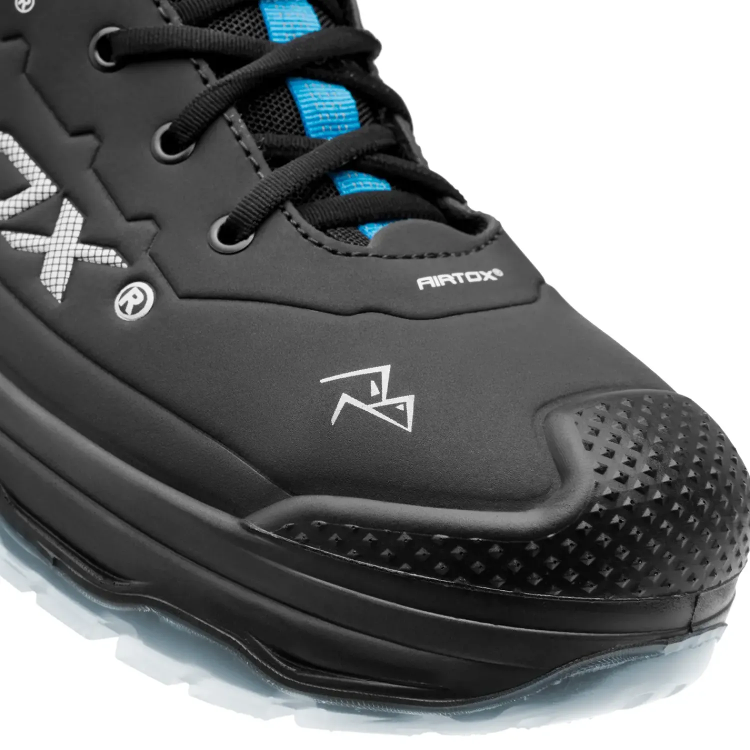 AIRTOX high-tech sikkerhedssko TX1 er udstyret med en række super features såsom verdens letteste sømværn: Whitelayer® – stærk som stål og blød som en klud. TX1 overdel består af et nyt og avanceret microfiber materiale. Materialet byder på letvægt, åndbarhed og vandafvisende egenskaber. Pasformen i TX1 er fantastisk god, det er nemlig lykkedes ingeniørerne fra Airtox at skabe en pasform som er både bred og atletisk. Skoene sidder som en sok om foden. TX1 sikkerhedssko kombinerer Whitelayer® med Airtox AIR-system 3.0, som gør modellen fleksibel og blød i en grad, der ellers kendetegner nogle få gode sneakers.