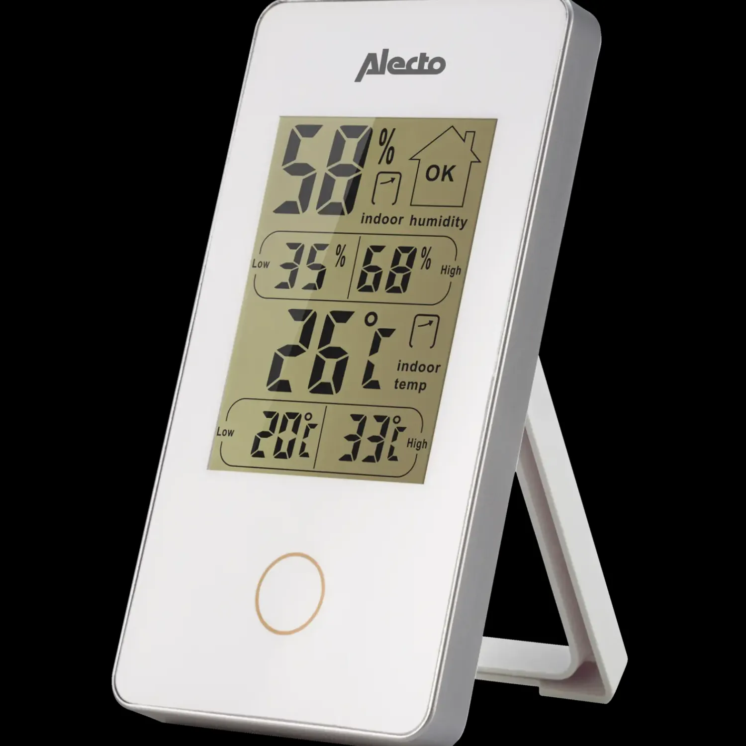 Brugervenlig, elektronisk termometer, der måler indendørstemperaturen samt luftfugtigheden – og det hele vises skarpt og let læseligt på det digitale display. Luftfugtigheden i dit hjem er faktisk ret vigtig. Den skal helst være afbalanceret – ikke for fugtig eller for tør. Specielt med en tør luftfugtighed kan man opleve irritation af slimhinderne. For høj luftfugtighed over længere tid kan føre til mug, skimmel og/eller meldug på vægge, gulve og vinduer. Med Alecto termometeret kan du nemt overvåge det nøjagtige fugtighedsniveau i dit hjem, så du er sikker på, at den altid er god. Hvis fugtighedsniveauet er for højt eller lavt vil du få en tydelig advarsel på displayet.