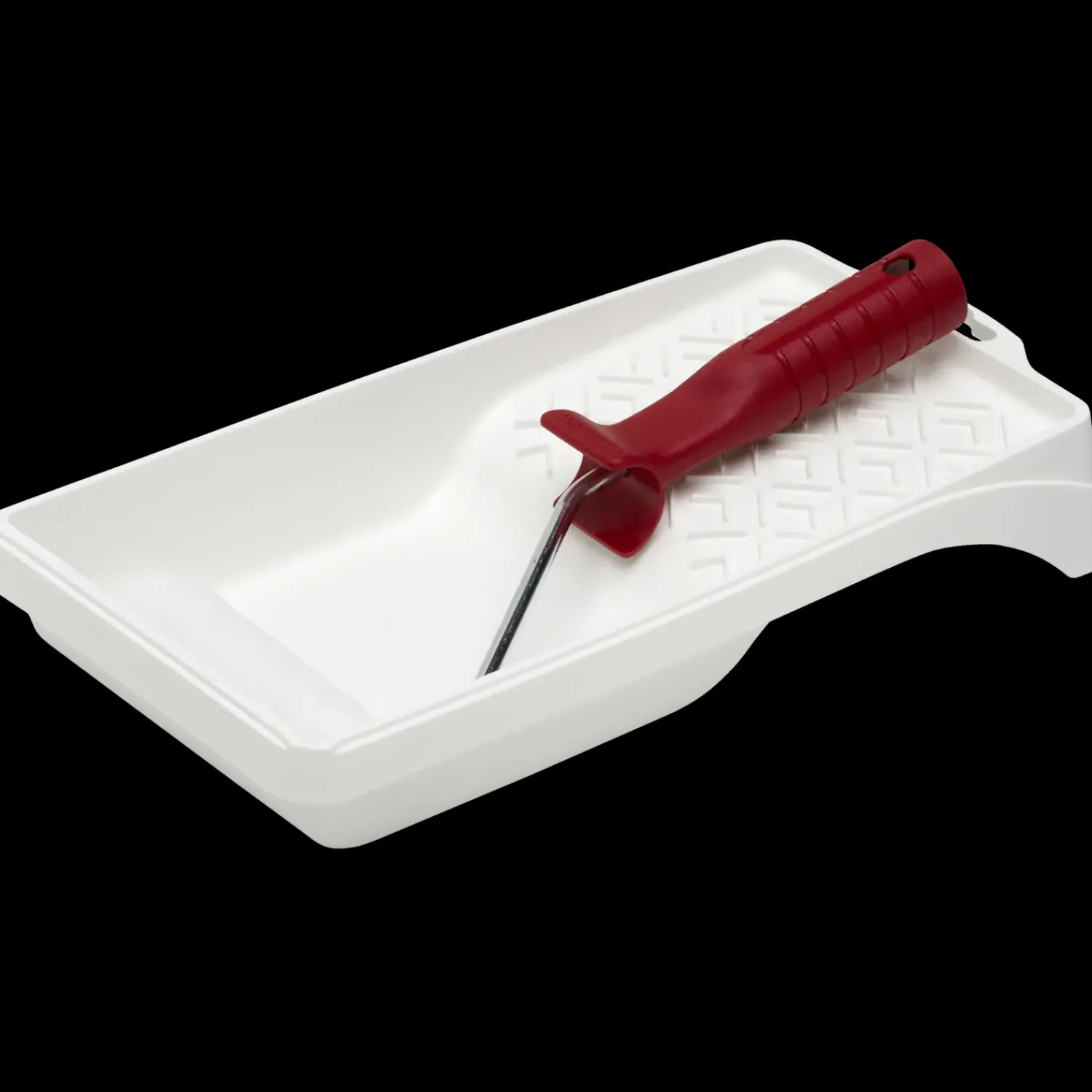 Sæt med rulle, skaft og malebakke i 10 cm bredde, den glatte filtrulle er ideel hvor man ønsker en glat overflade, f.eks til maling af døre og skabslåger.