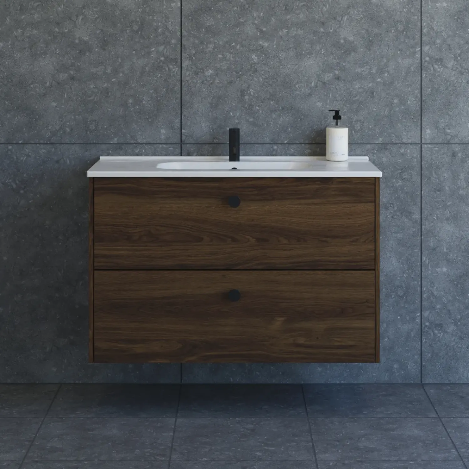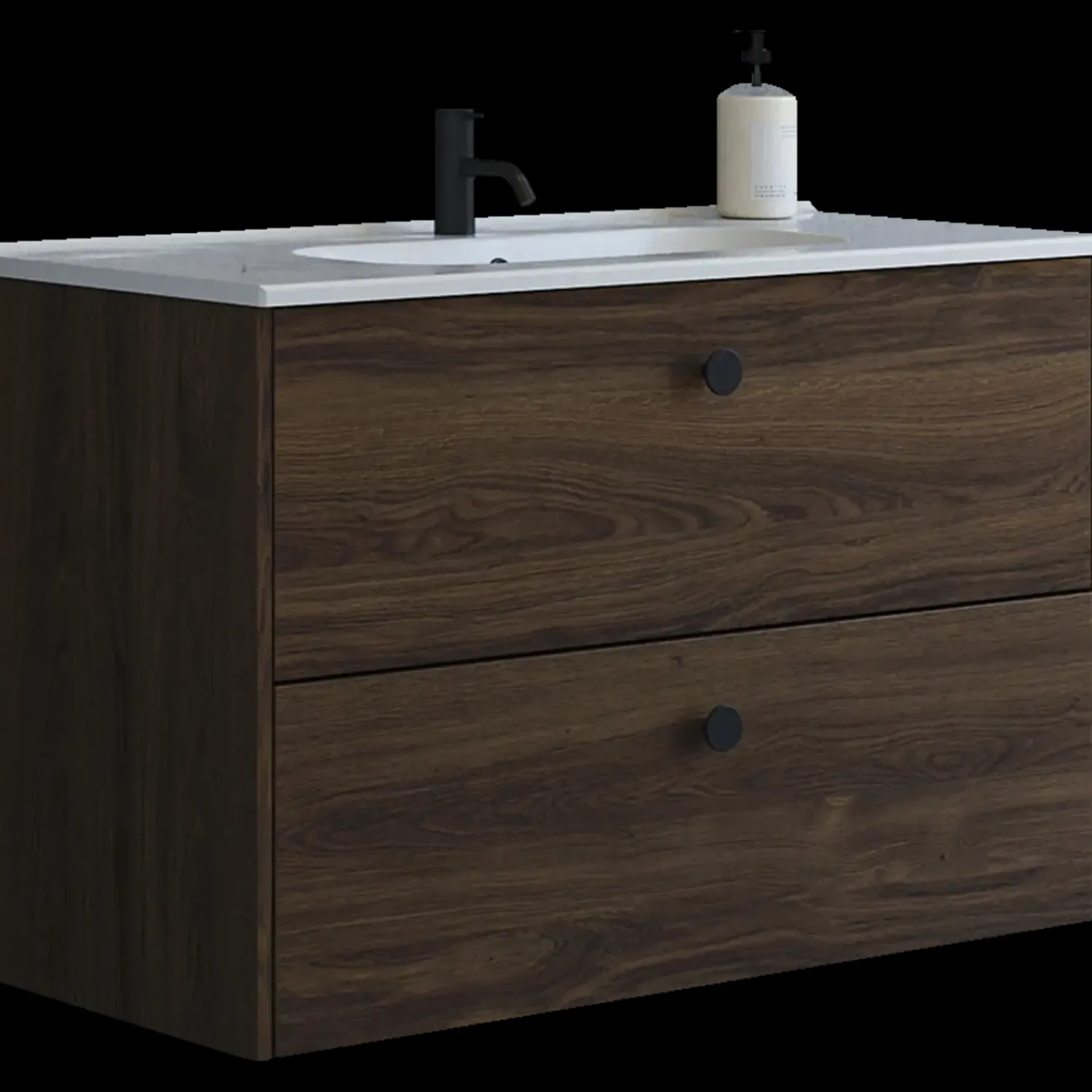Bademiljøer^Scanbad Delta badmøbel m/Karat vask, 2 skuffer, brun eg 100 cm