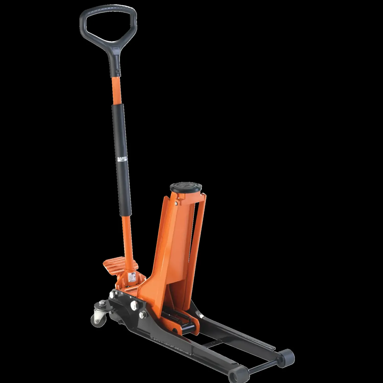 Forsynet med PU-belagte stålhjul, dobbelte stempler samt sikkerhedsanordning mod trykfald,