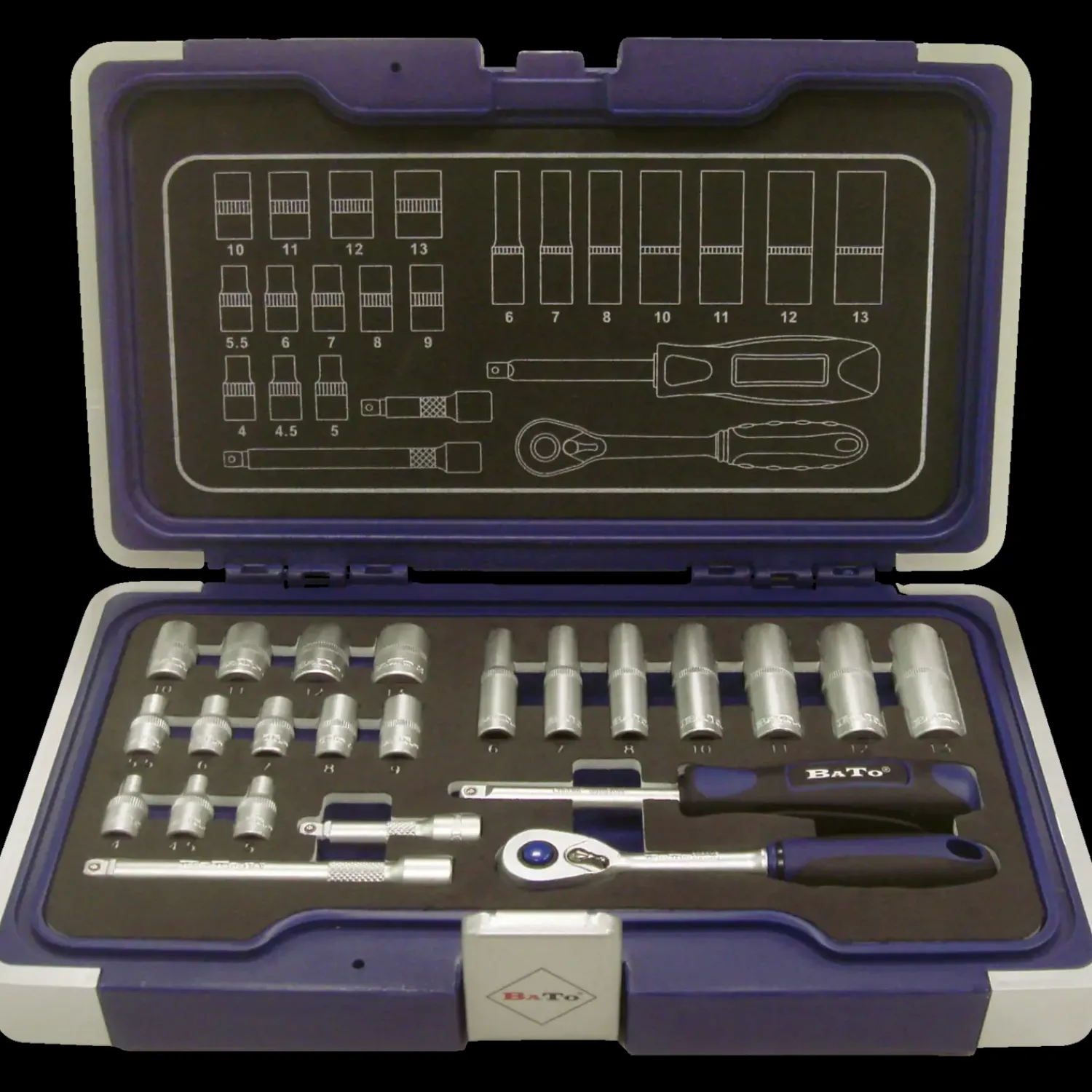 Kraftigt topnøglesæt leveret i stærk plastikboks.
