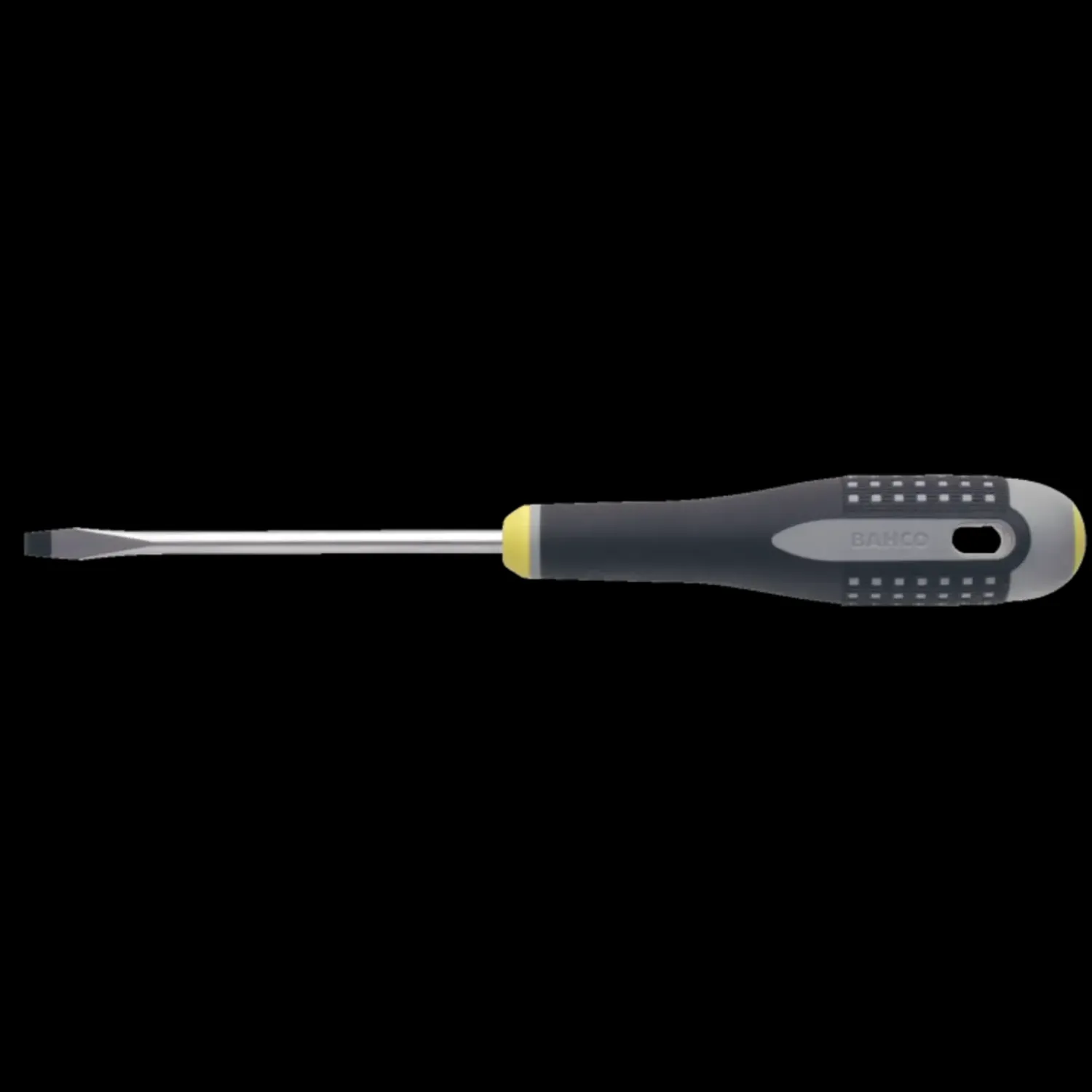 Lige kærv skruetrækker fra Bahco’s ERGO serie med 3-komponenthåndtag for maksimal brugerkomfort, blødt materiale med nubret overflade giver et godt greb og højere vridmoment