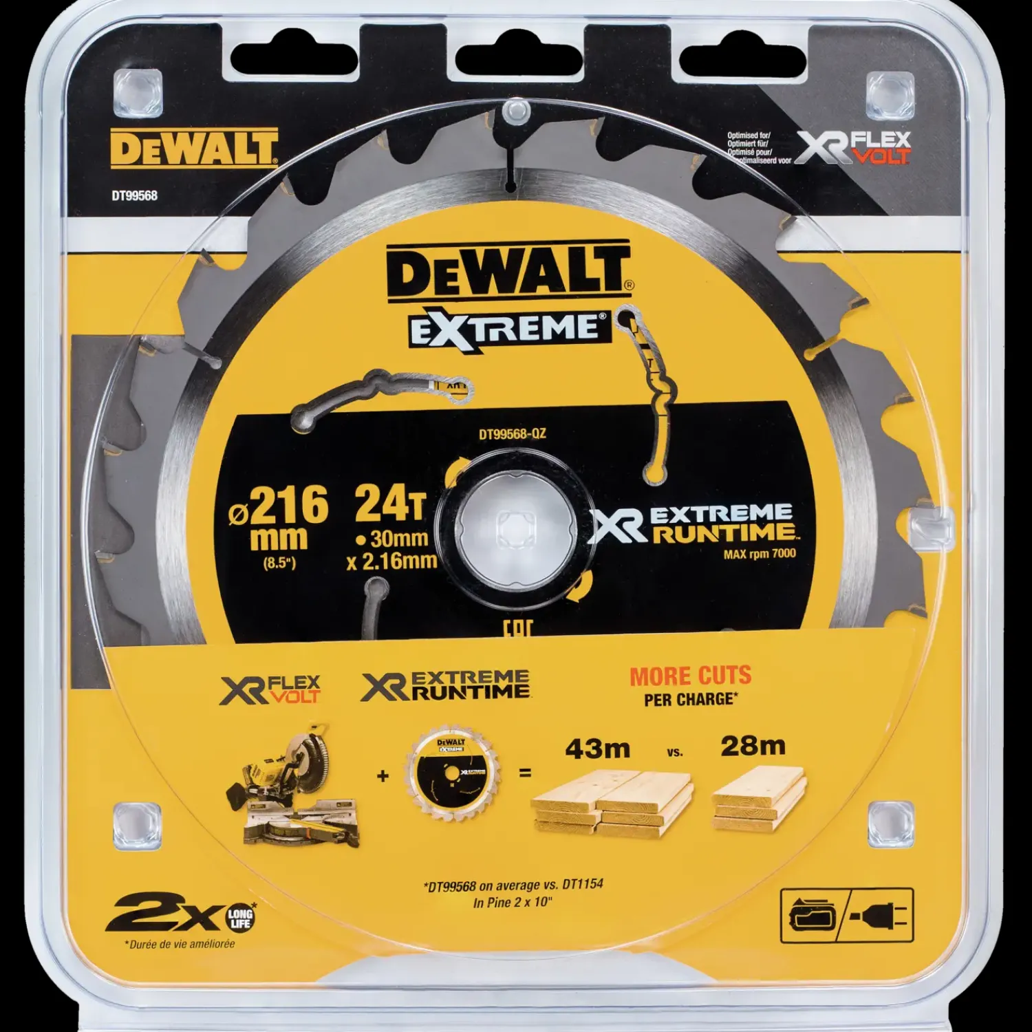 Rundsavsklinge Extreme Runtime-tilbehør optimeret til FLEXVOLT-værktøjNail Tough – perfekt til savning i træ med sømØget effektivitet til maksimal køretid på batteri.