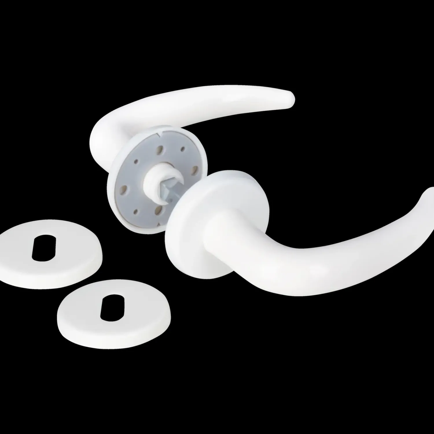 Jasa Coupe dørgreb i hvid plast med 6 mm oppresset roset inkl. nøgleskite Ø52 mm.