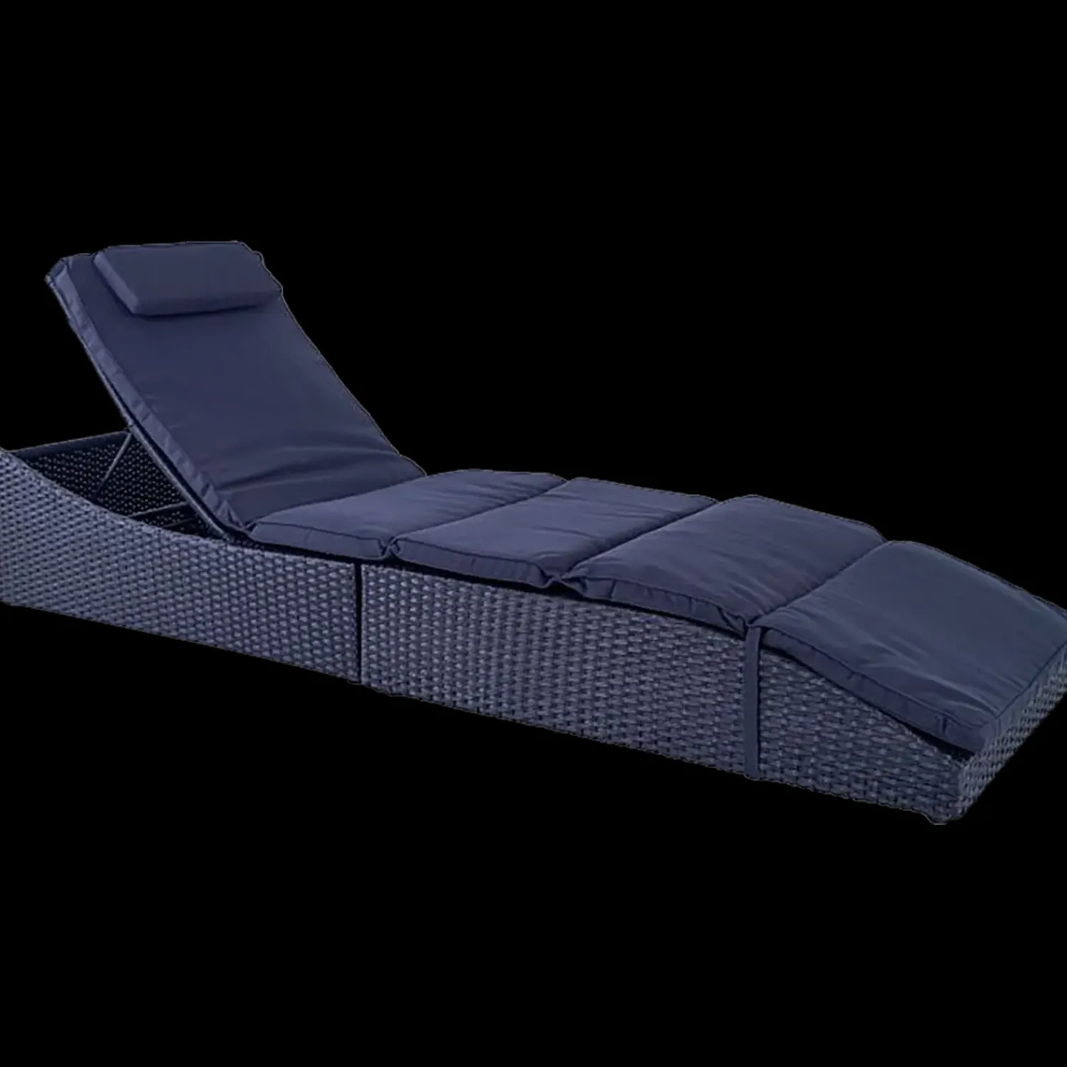 Solseng i sort børstet PE-flet inkl. antracit hynde med nakkepude.Solvognen kan klappes sammen med opbevaring til hynden.Mål: L:200 B:60 H:37 cm.