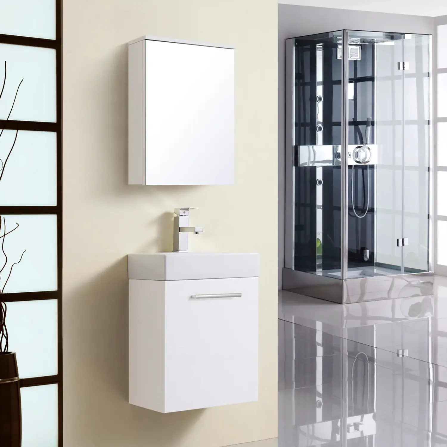 Flot spejlskab i hvid højglans med en enkelt indvendig hylde.