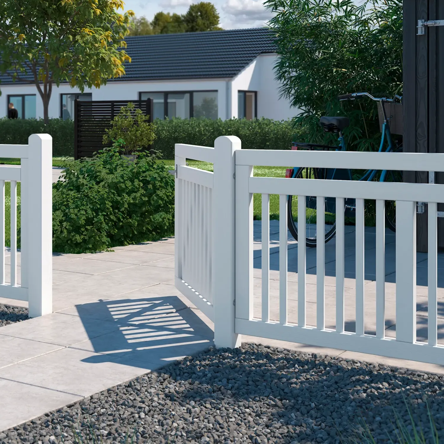 Klassisk og præsentabelt Linea havehegn fra Plus, giver et flot og indbydende udtryk til hjemmet og viser din indkørsel på bedste vis. Det åbne udtryk med lodrette stave i en robust ramme fremstår imødekommende og stilrent sammen med omgivelserne og passer godt til både nybyggede huse og de lidt ældre.