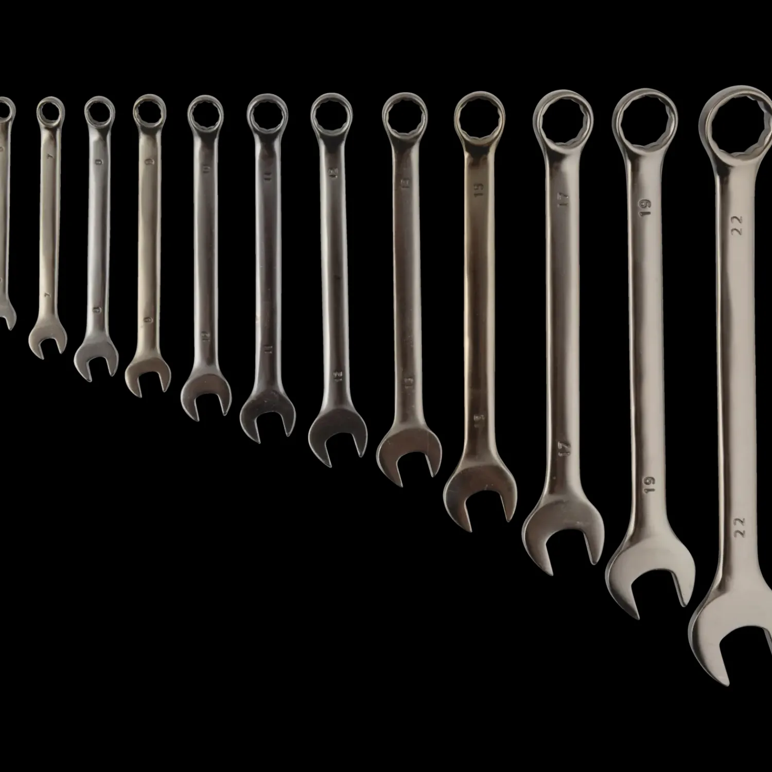 Probuilder ringgaffelnøgle sæt med 12 nøgler, ellipse slebet og med elektro finish.