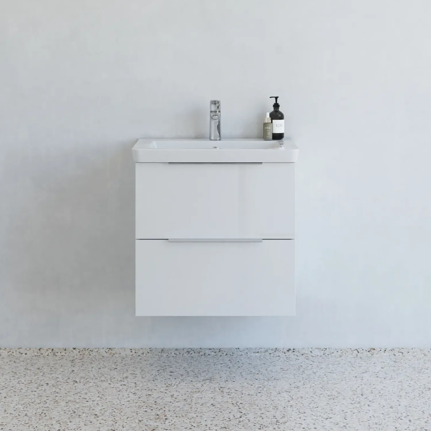 Skab et stilrent og funktionelt badeværelse med denne møbelpakke i 60 cm bredde. Den elegante Lazuli håndvask i sanitetsporcelæn har et ekstra dybt og rummeligt bassin med flad bund, der giver masser af plads til daglig brug. Den hårde, glatte og blanke overflade er både modstandsdygtig og nem at rengøre, mens de afrundede kanter tilfører et blødt og eksklusivt udtryk. Det tilhørende vaskeskab har to rummelige skuffer med fuldt udtræk og dæmpning for en lydløs og behagelig brugeroplevelse.