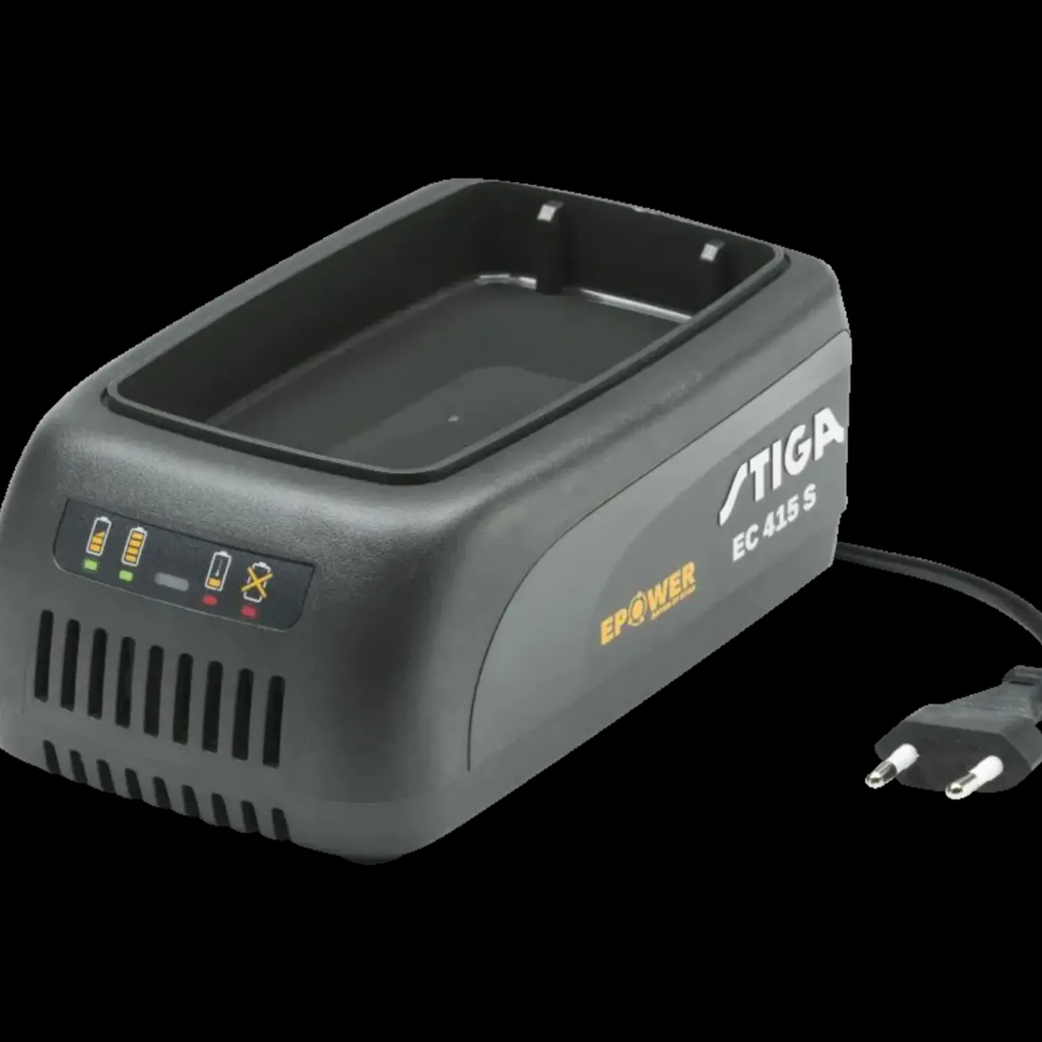 ePower EC 415 S standardlader, har plads til ét batteri af gangen og passer til alle ePower 48 V batterier, herunder alle batterier fra 500-serien, 700-serien og 900-serien.