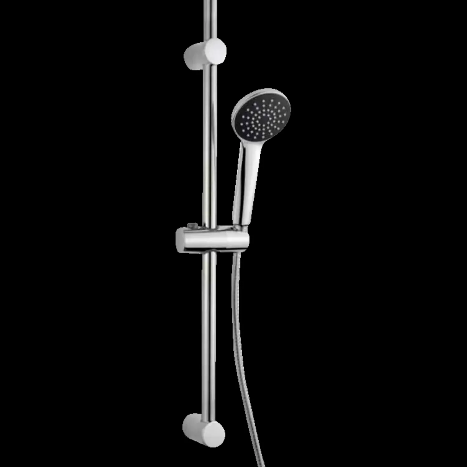 Basic bruserstangsæt, krom. Bruserstang med faste vægbeslag og trinløs bruserholder, 1-jet håndbruser med RubberClea…