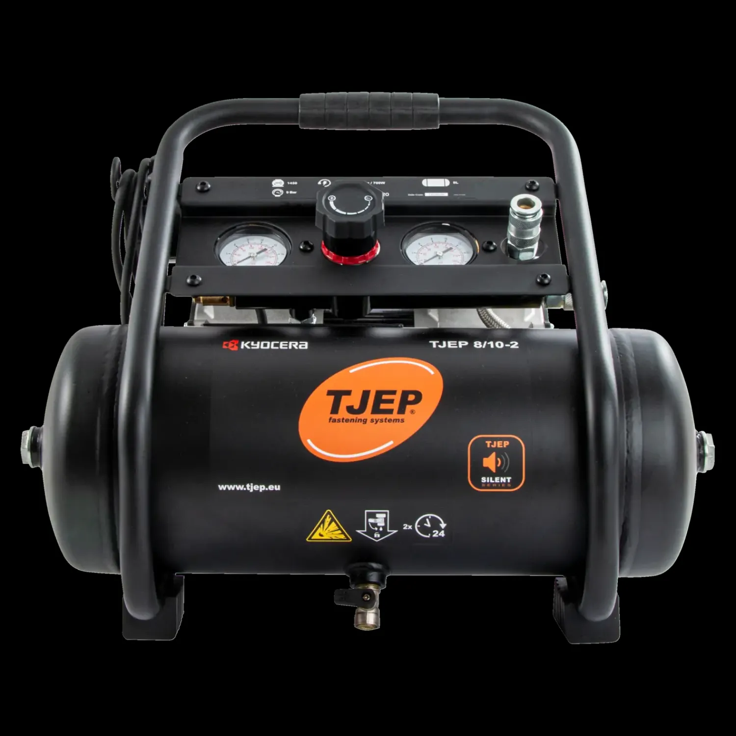 Nyeste generation af støjsvage kompressorer TJEP 8/10-2 er med et lydtryk på kun 58 dB blandt markedets absolut mest støjsvage. Den støjsvage kompressor kan give en håndværker mulighed for, at starte arbejdsdagen tidligere eller slutte senere, da støjen i langt mindre grad generer naboer og forbipasserende. Derudover medvirker en støjsvag kompressorer til et bedre arbejdsmiljø – specielt ved byggeprojekter, hvor der ofte er dårlig akkustik. Med TJEP 8/10-2 minimerer du risikoen for gener, som eksempelvis hovedpine og træthed, væsentligt i forhold til at arbejde med en konventionel kompressor.