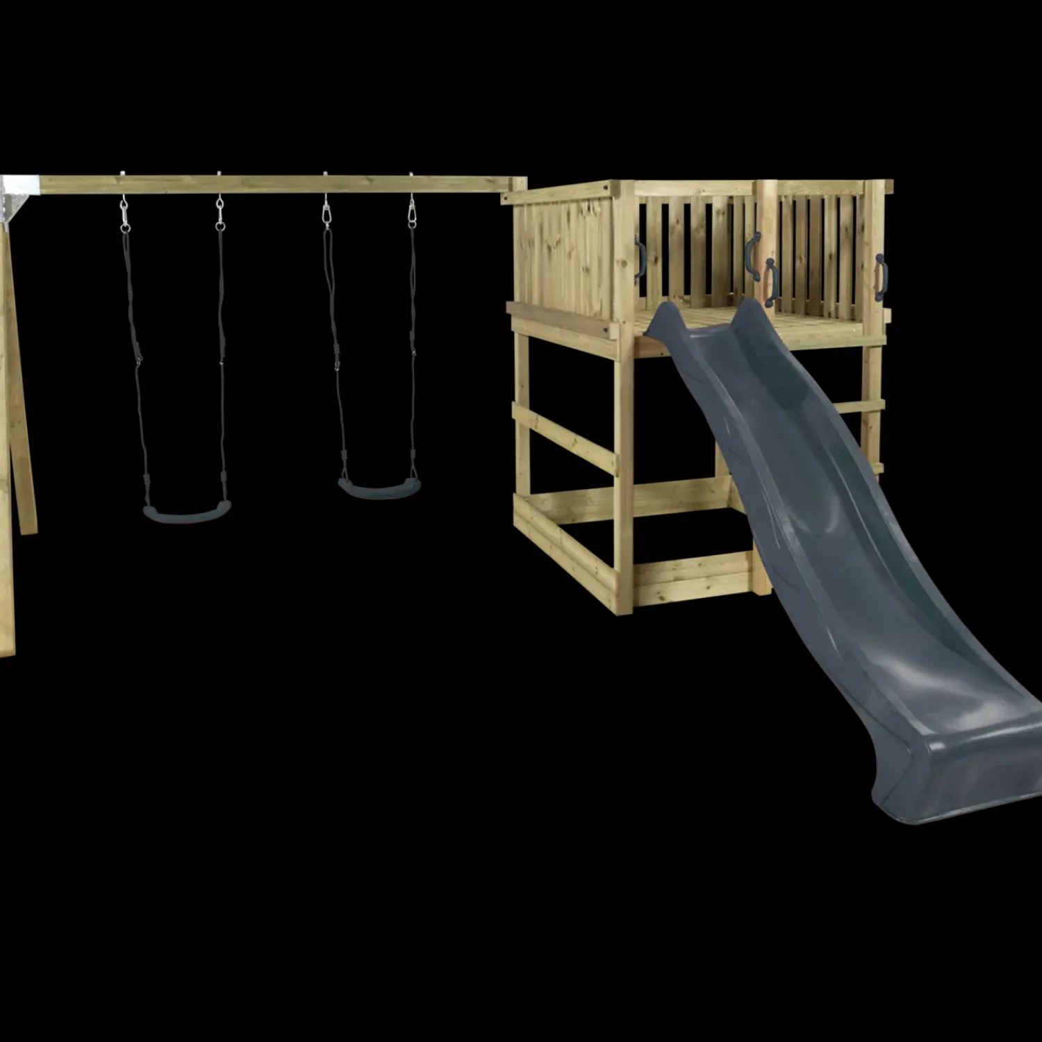 PLUS Play Legetårn inkl. gyngestativ gråsort rutsjebane og gynger – 185282-4