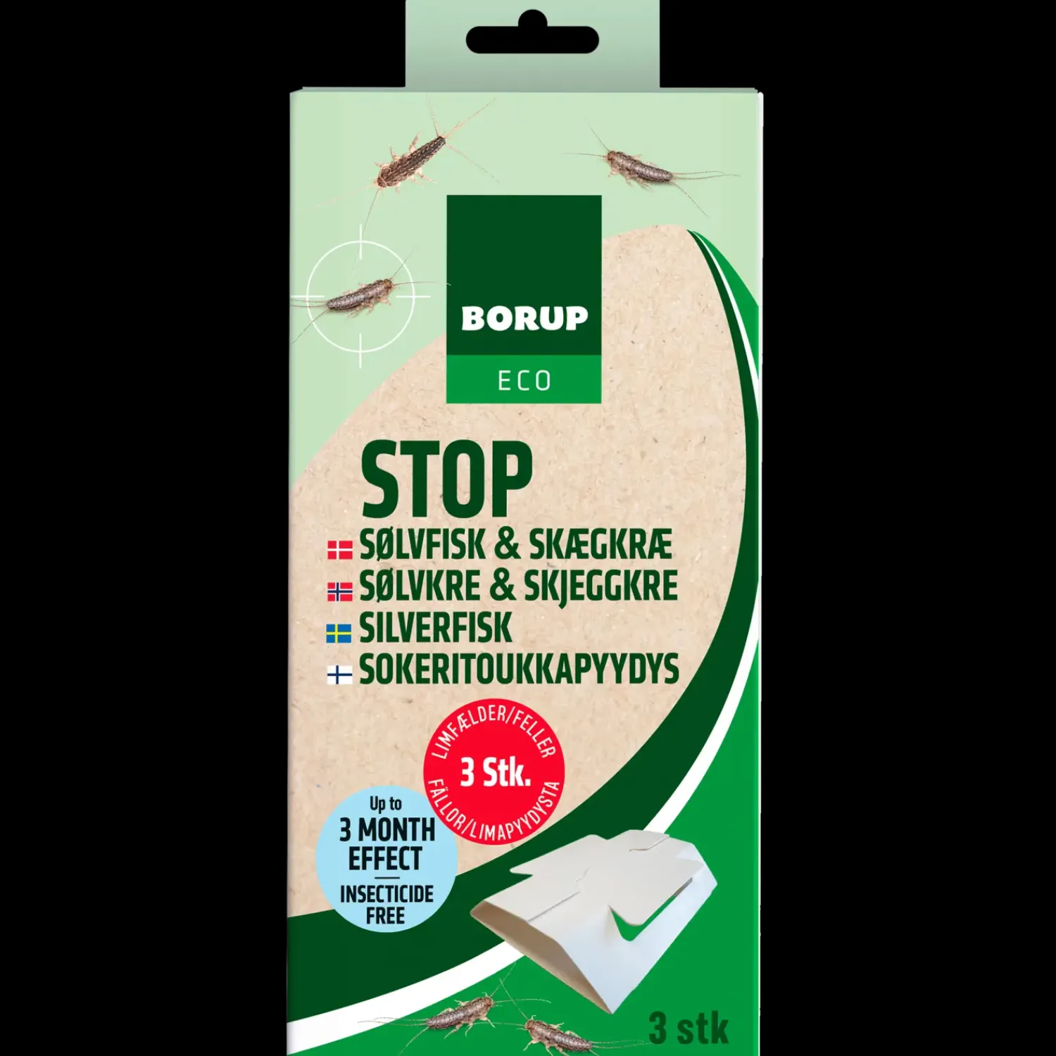 Med Borup ECO Sølvfiskefælde får du en miljøvenlig og effektiv løsning, der hjælper med at bekæmpe både sølvfisk og skægkræ, samtidig med at du opretholder et rent og skadedyrsfrit hjem.