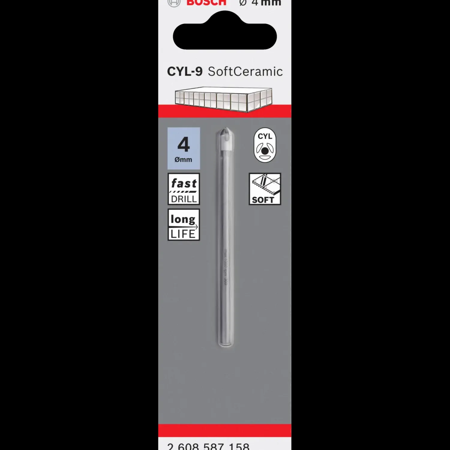 Flisebor CYL-9 CeramicStandardbor til fliser – CYL-9 SoftCeramic-flisehammerboret er et standardhammerbor til boring i fliser. Det praktiske hammerbor er velegnet til tørboring uden køling. Det enkle design uden noter er særlig velegnet til boring i bløde til mellemhårde fliser. Borehovedet er kompatibelt med strømforsynede og batteridrevne boremaskiner med cylinderformet skaftsystem. Boring uden slagfunktion ved lave omdrejningstal. Cylindrisk skaft, der er kompatibelt med borepatroner med 3 kæberStandard til boring i fliserPraktisk tørboring uden behov for kølingEnkelt design uden noter, som er særlig velegnet til boring i fliserDiameter (D) mm: 4,00Total længde mm: 70