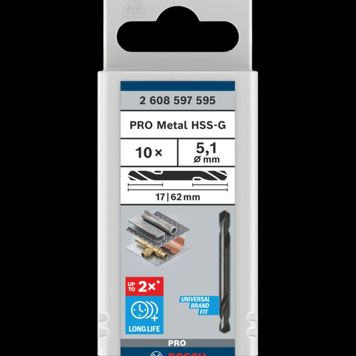 Bosch PRO Metal HSS-G spiralbor med dobbelt ende, 5,1 x 17 x 62 mm, 10 stk.