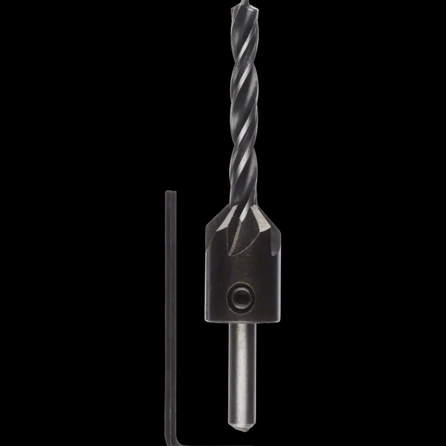 Træspiralbor med forsænkerBoring og undersænkning i et enkelt trin – Dyvelborehovedet med spidsforsænker borer, undersænker og kantfræser effektivt i et enkelt trin i træ. Monteret på et dyvelborehoved, og løser alle tre opgaver billigt og effektivt. Spidsforsænkeren er velegnet til hårdt og blødt træ, laminerede og ikke-laminerede spånplader og krydsfiner. Spidsforsænkeren er beregnet til borestandere og skruemaskiner. Denne multifunktionsbit, som er fremstillet af værktøjsstål, har en 90-graders-undersænkningsvinkel, fem skærekanter, og kan også anvendes som dybdestop. Spidsforsænkeren leveres med sekskantnøgle, dyvelborehoved og holdermonteret spidsforsænker. Cylindrisk skaft, der er kompatibelt med borepatroner med 3 kæberEffektiv et-trins-boring og undersænkning i træ.Monteret på et dyvelborehoved, og løser alle tre opgaver billigt og effektivt00Diameter (D) mm: 6,00Udvendig Ø mm: 16