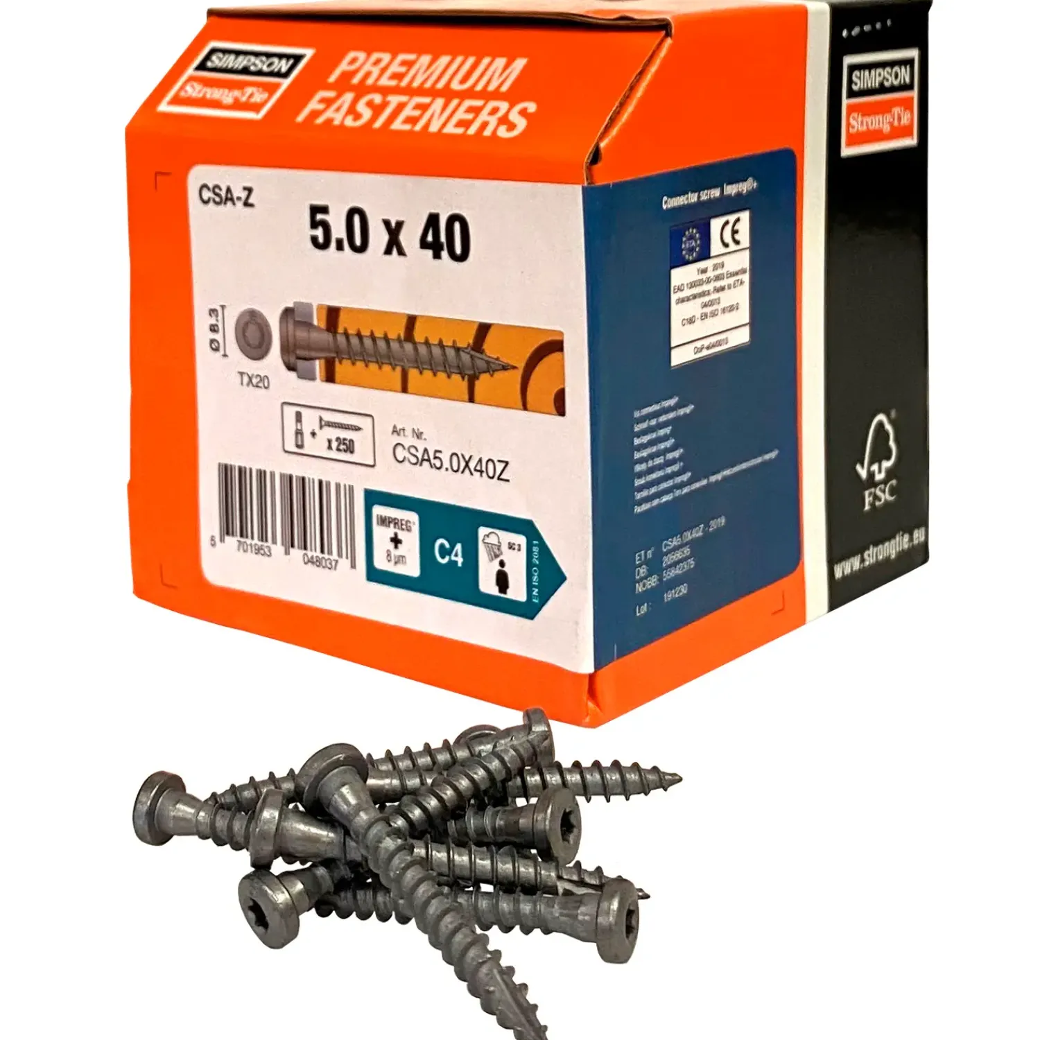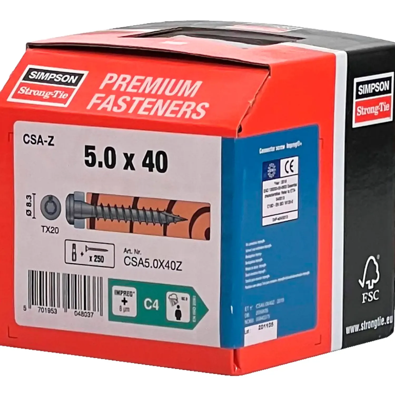 CSA beslagskrue med Impreg®+ coating til montage af Simpson Strong-Tie’s ZPRO beslag. Med ZPRO beslag monteret med CSA-Z tilbyder Simpson Strong-Tie en god løsning til udendørs konstruktioner.