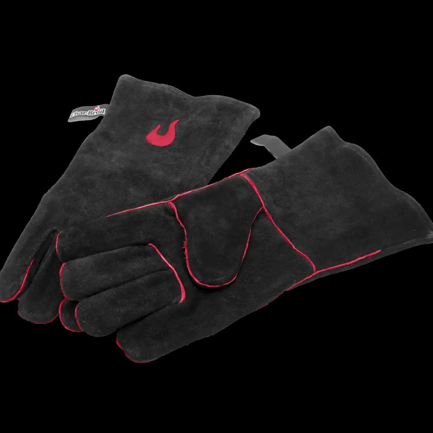 To kraftige grillhandsker lavet af ruskind, som gør dem yderst stærke og behagelige at have på. Med disse handsker undgår du at brænde hænderne når du griller.