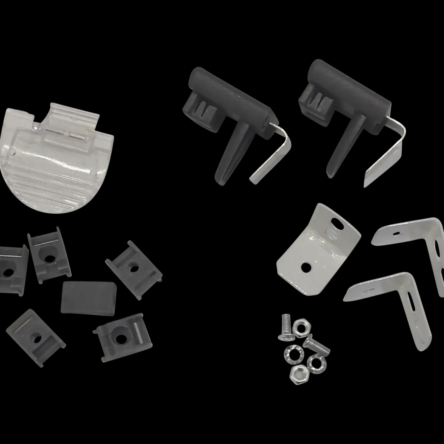 Kitsæt til Flex plisségardin. Kitsættet består af følgende: – 2 easyfit-beslag – 1 greb – 4 L-beslag – 4 skosæt Sættet fås i farverne sort, hvid og grå.