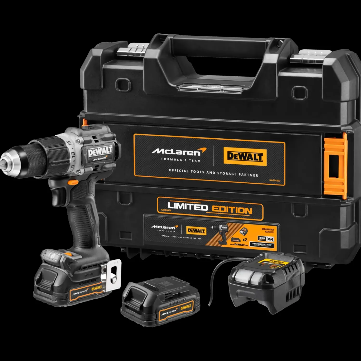 DEWALT limited edition Mclaren 18V XR kompakt bore-/skruemaskine med slag.