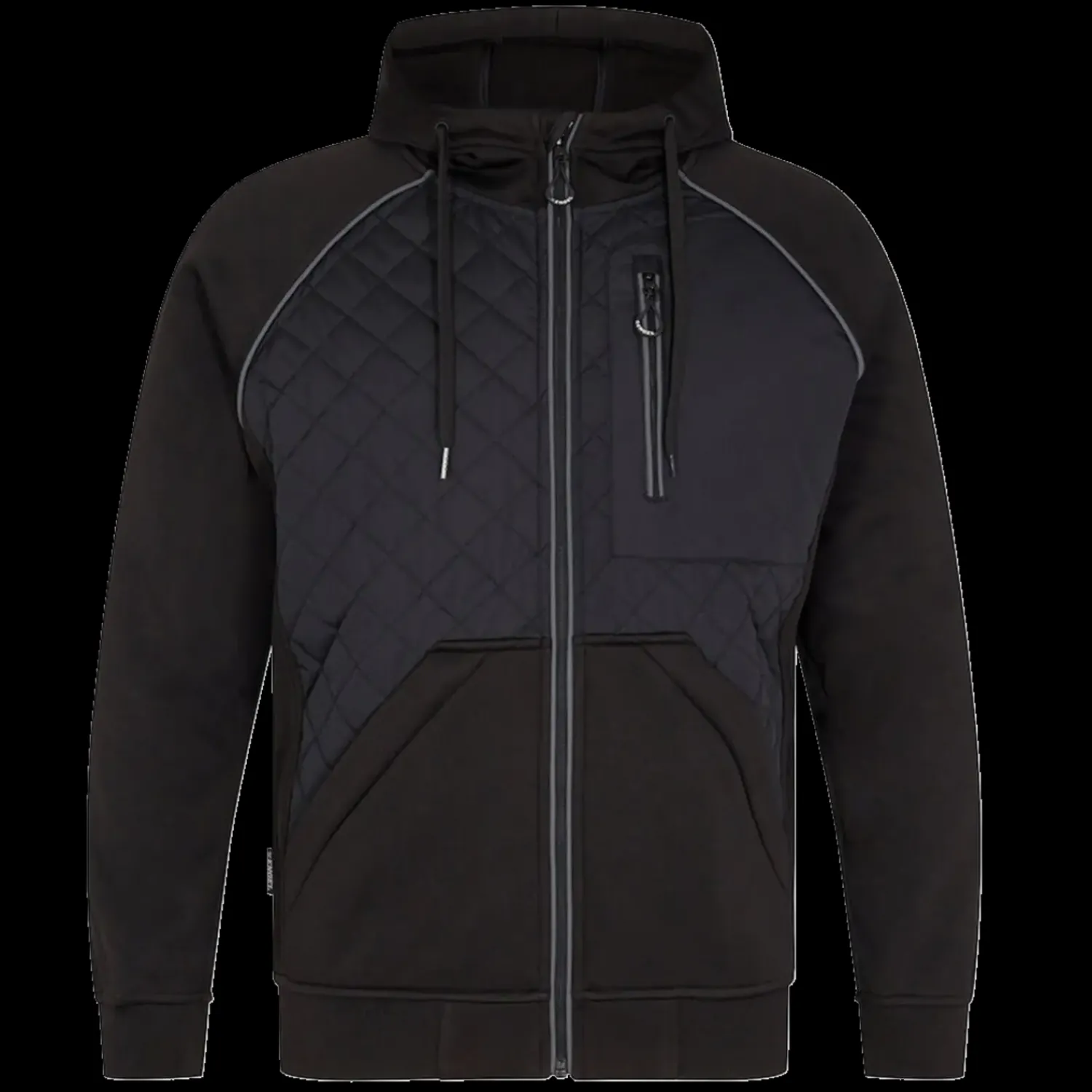 Smart softshelljakke med justerbar hætte, høj krave og qulitet forstykke fra F.Engel. Jakken er designet med rummelige lommer alle med lynlås, samt reflekspiplings for og bag jakken.