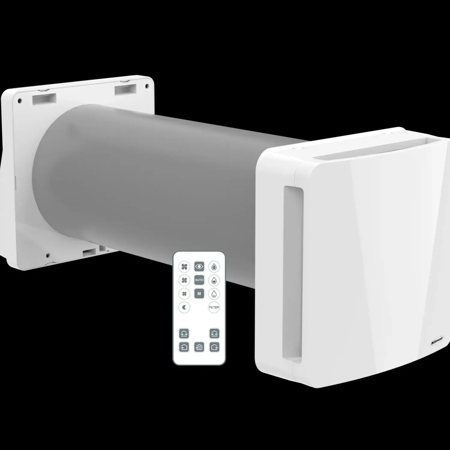 - Natindstilling, konstant udluftning med varmegenvinding på lav hastighed og lavt lydniveau
