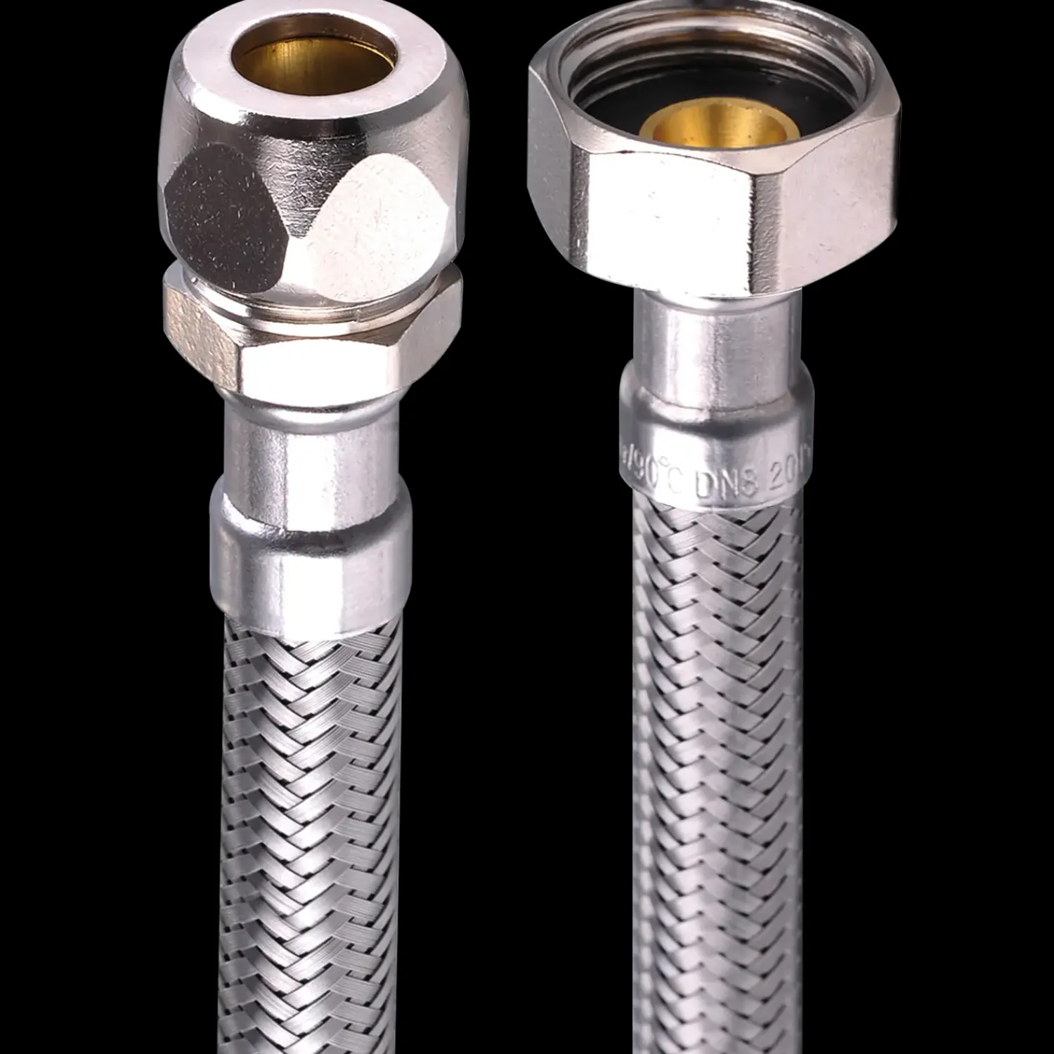 Forlænger- og reparationsslange til armaturer med 10 mm kobberrørs tilslutning. Monteres direkte på 1/2″ ventil.