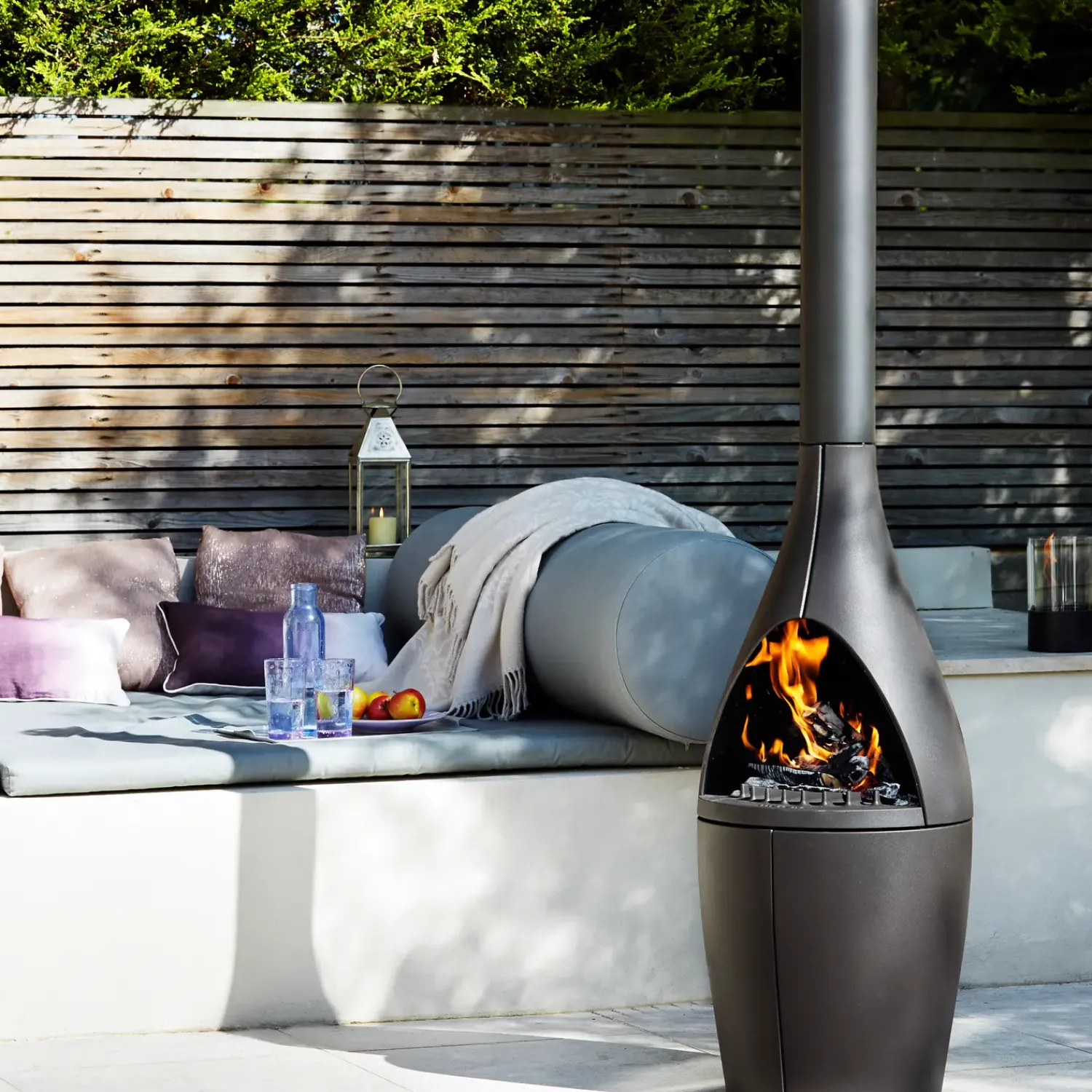Udepejsen Morsø Kamino er formgivet i støbejern og kan – ud over at pynte og varme i alle udemiljøer – også forlænge anvendeligheden af terrassen, så den kan benyttes fra de tidligste forårsmåneder, på kølige sommeraftener og helt hen til det begyndende efterår. Med en Kamino udendørs pejs på terrassen, får du både hygge og varme på samme tid.