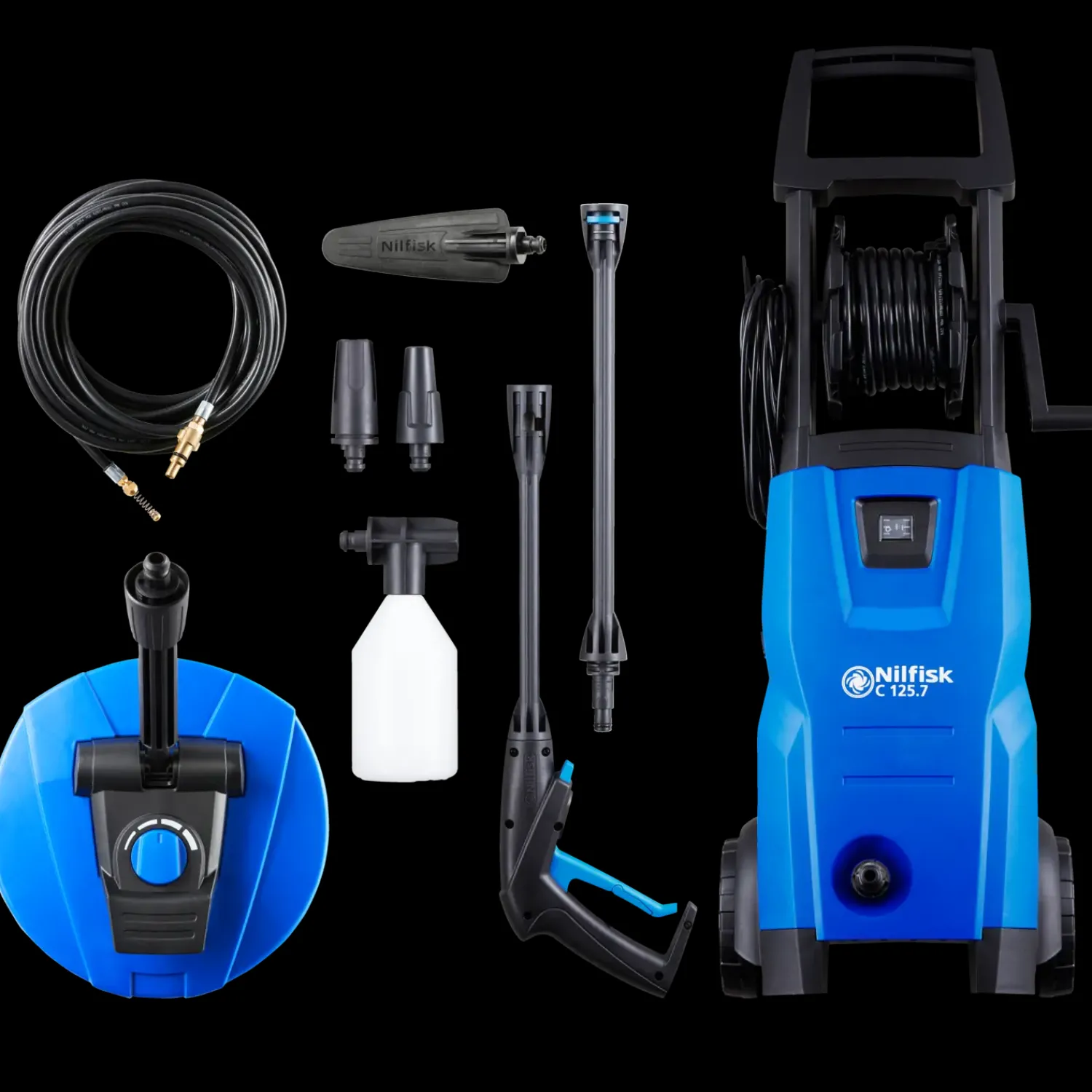 Nilfisk C 125.7-6 PAD X-TRA er en handy højtryksrenser til rengøring af bil, cykel eller havemøbler. Den er i et kompakt design og leveres med slangetromle, så den fylder mindst muligt under opbevaring. Desuden har en praktisk opbevaringsplads til dyser, dyserør og sprøjtepistol på selve maskinen.