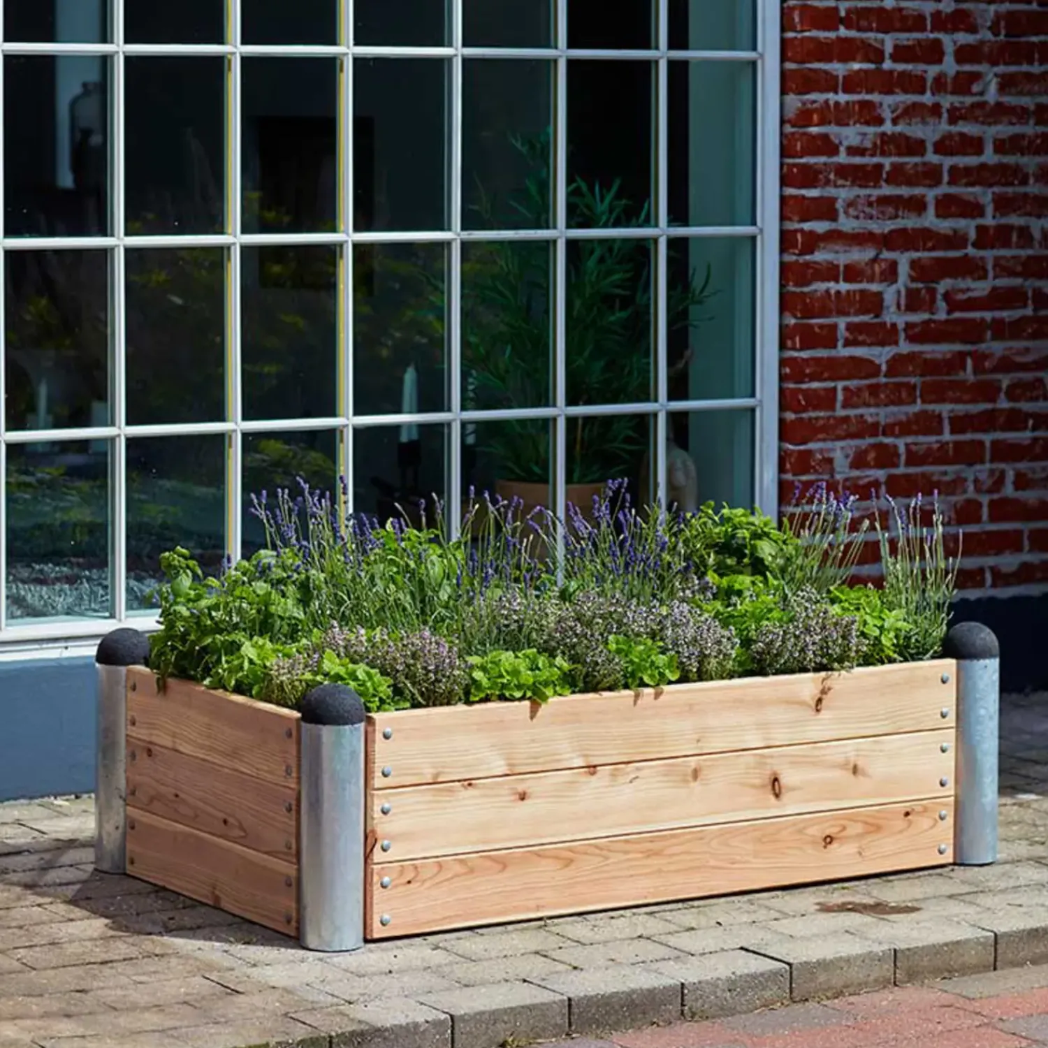 Med pipe modulsystem er fleksibilitet nøgleordet. Her bænk til montering mellem to Pipe højbede.