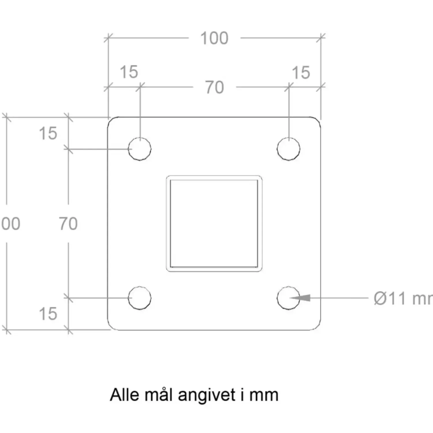 - Flange: bredde 45 mm – længde 70 mm – tykkelse 3 mm