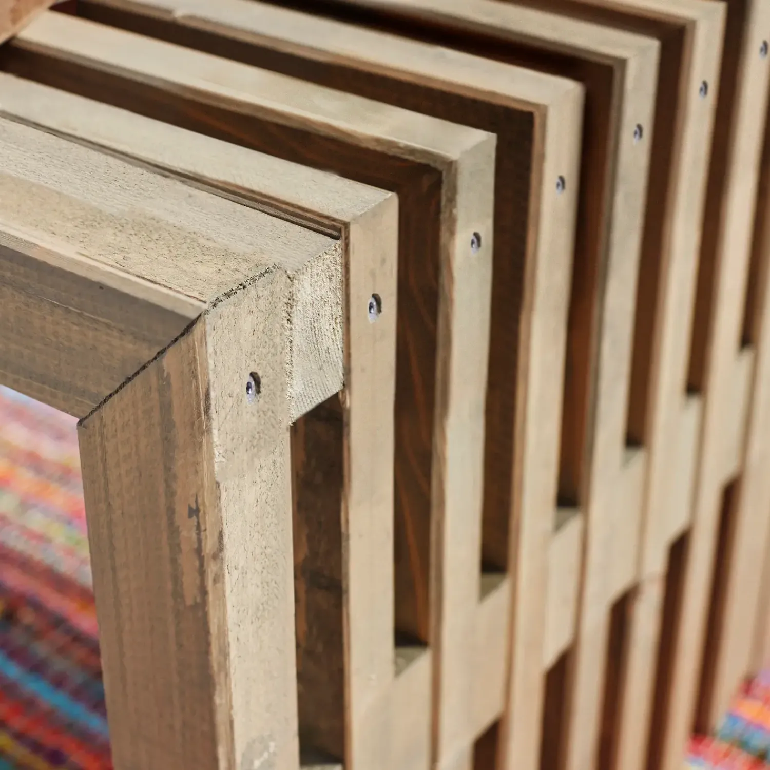 OBS: Produktet er råt og rustikt, derfor kan der forekomme harpiksudtræk og revner i træet.