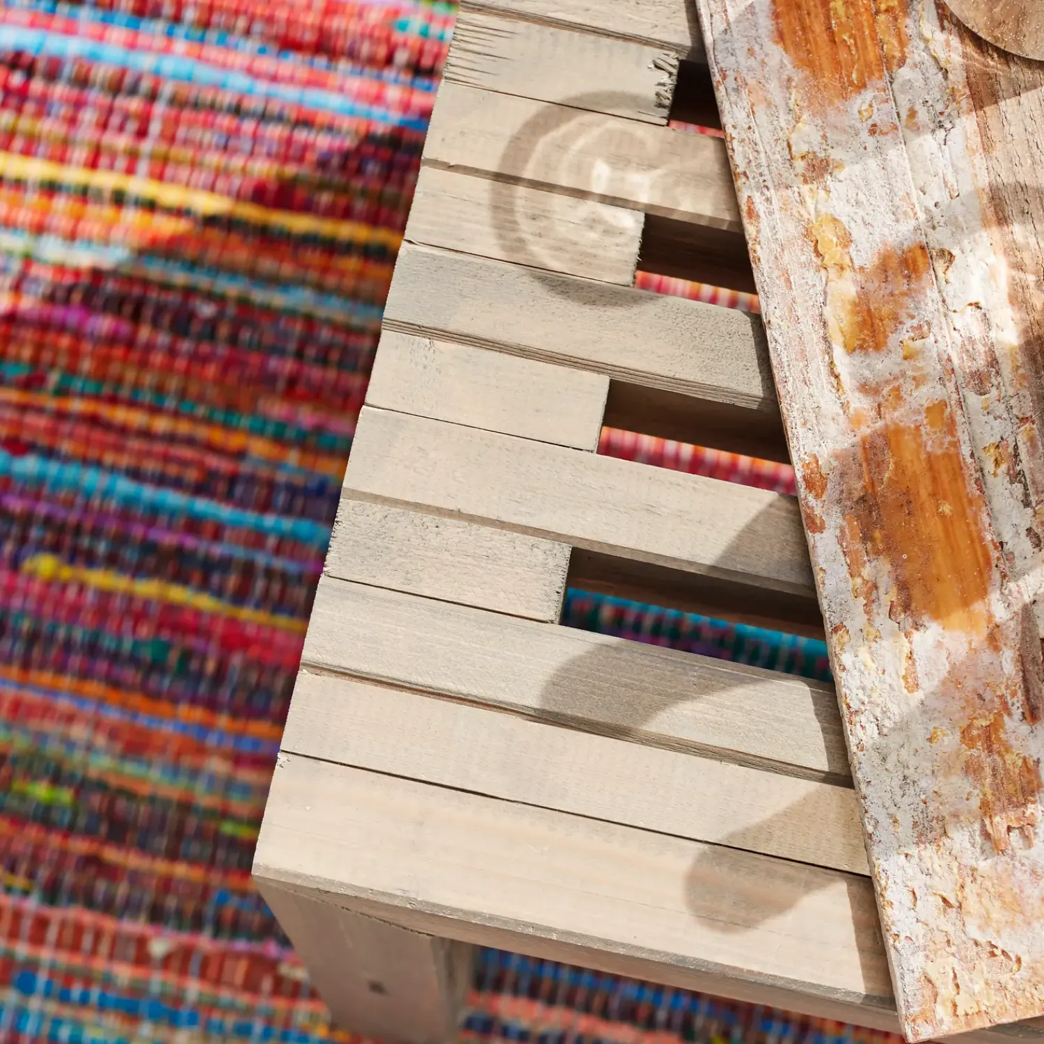 Med Siesta Trallebænk, fremstillet af traller i drivtømmerfarve, får du en rustik sofa, der skaber råhygge på varme sommeraftener. Til bænken findes også en matchende stol og sofa samt hynder og en glasplade så den kan omdannes til et trallebord.