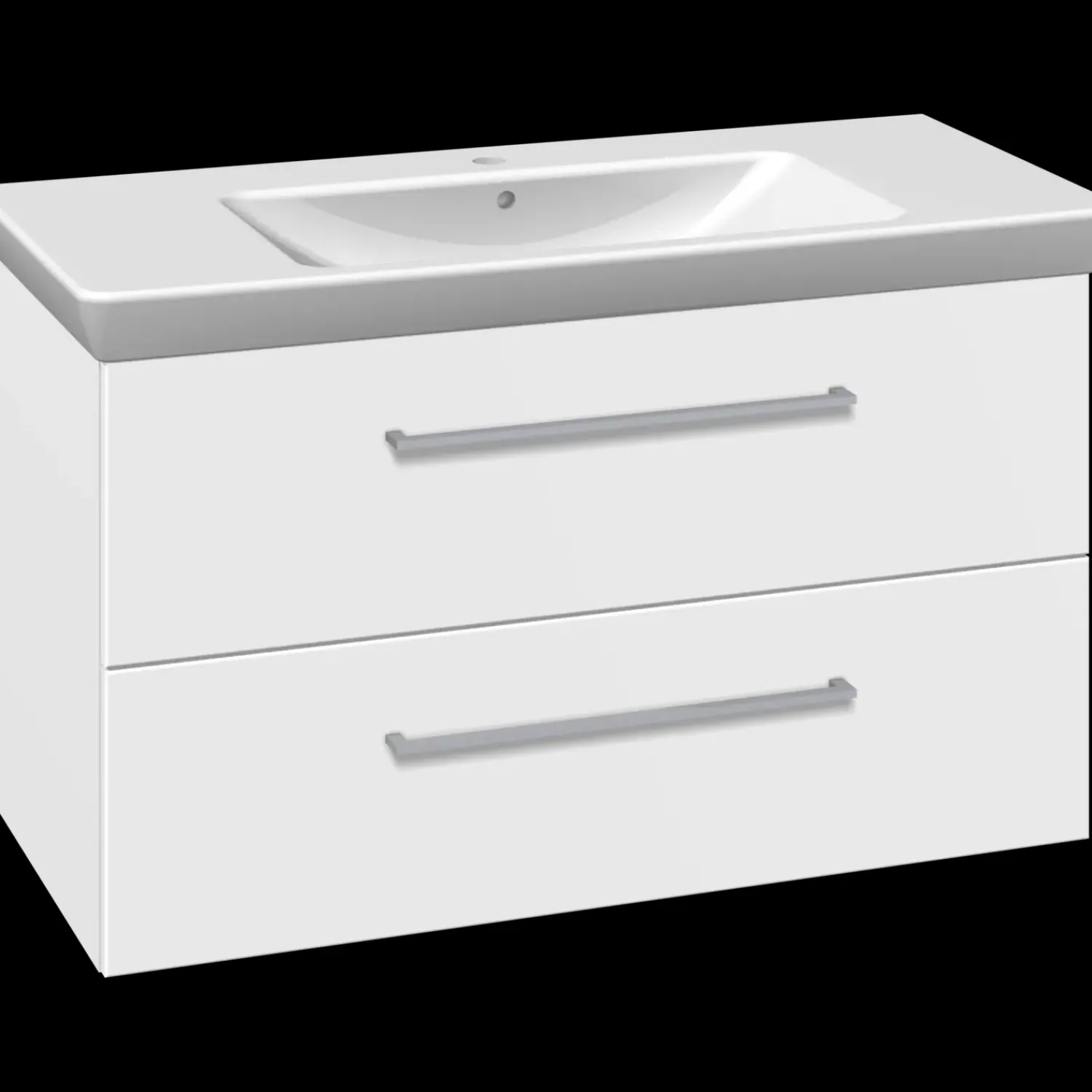 Møbelpakke som indeholder et vaskeskab med 2 skuffer og en Lotto XL vask i porcelæn. Praktisk møbel med god opbevaringsplads. Skandinavisk stil.