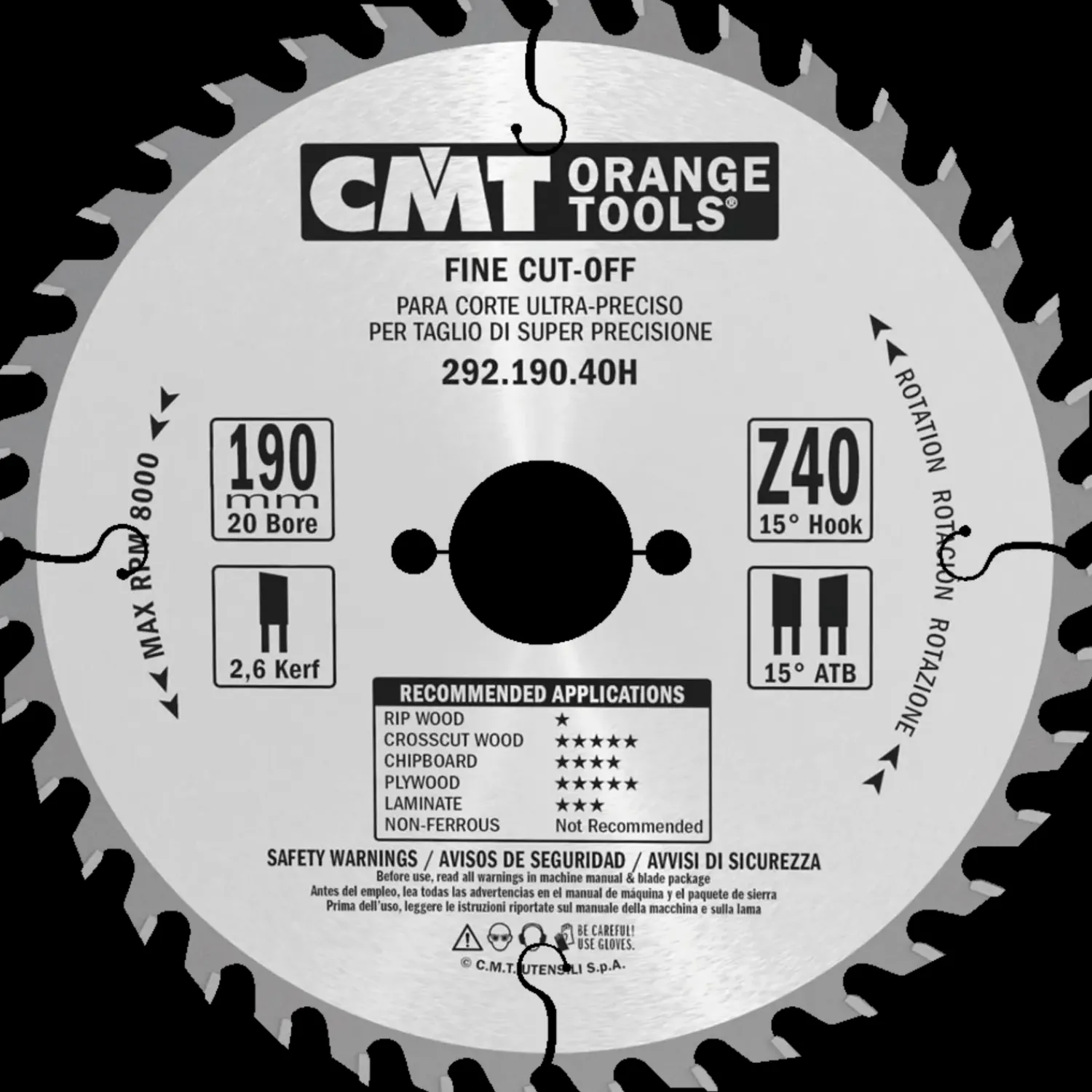 Universal klinge til afkortning af træ med fint snit, alle typer træ, træbaserede plader og papirbaserede laminater. 10° savvinkel.