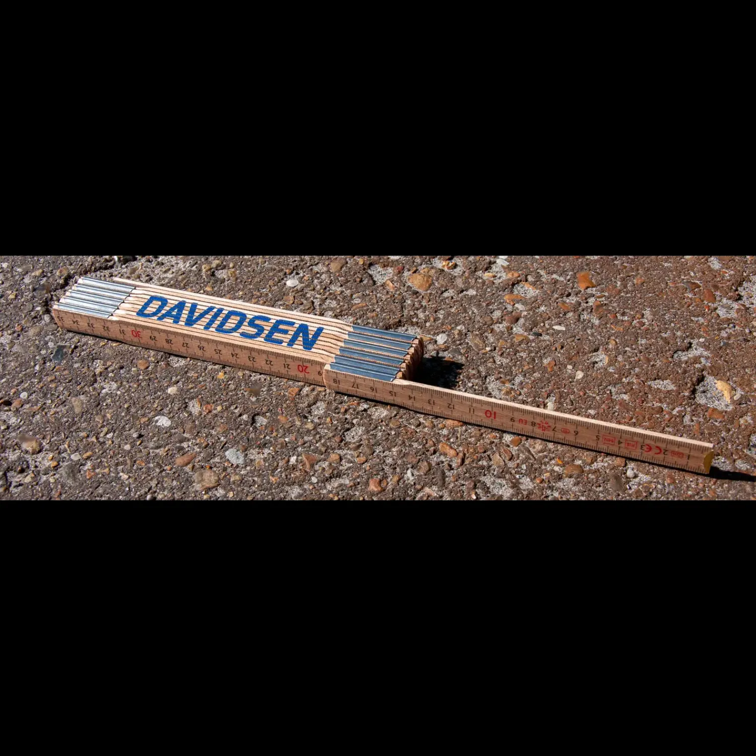 Davidsen 12 ledet 2-meter meterstok. Traditionelt fremstillet i glasbirk med led i svensk stål, som muliggør tynde led og en smidig meterstok.