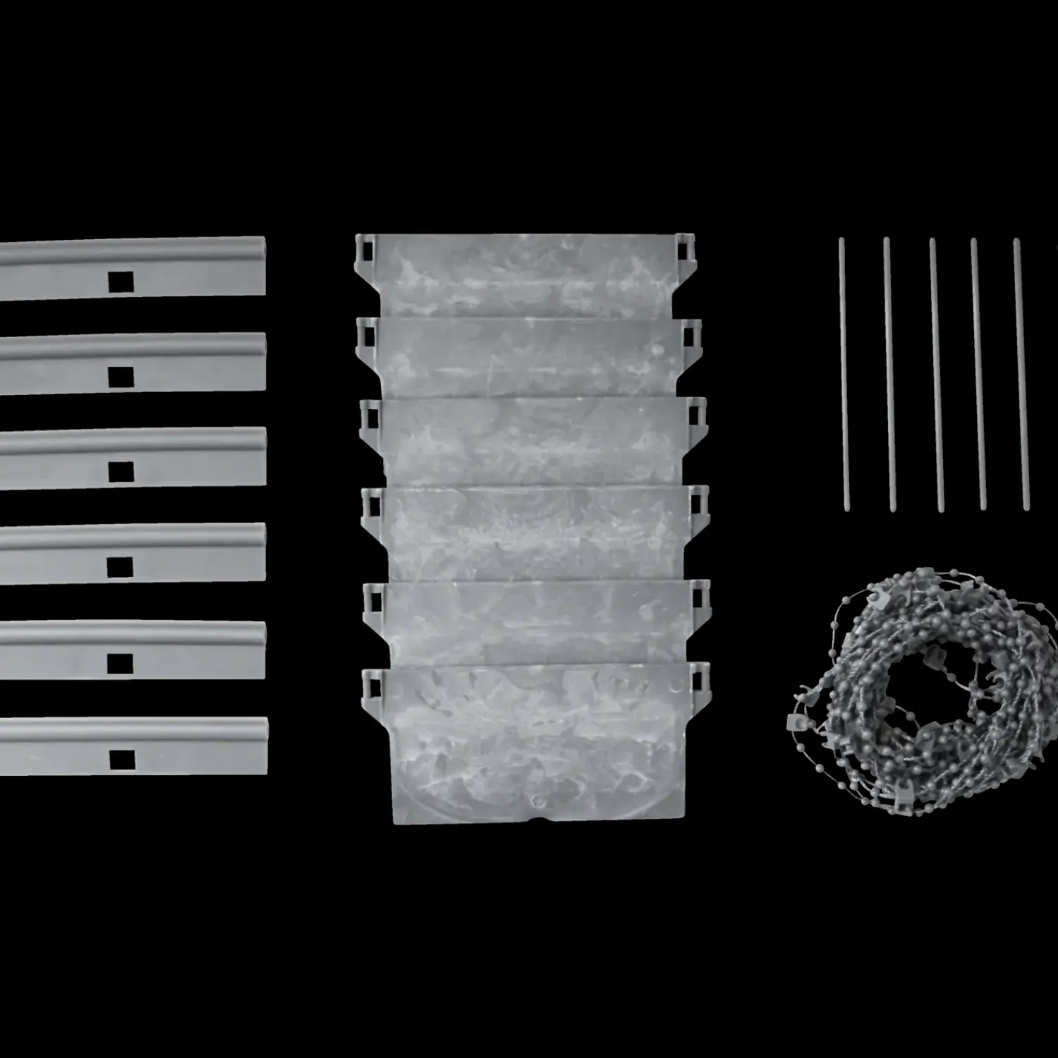 Lamel-Kitsæt til lamelgardin. Kitsættet indeholder 6 x bundvægte, hængere og bundkæde til lamelgardinet.