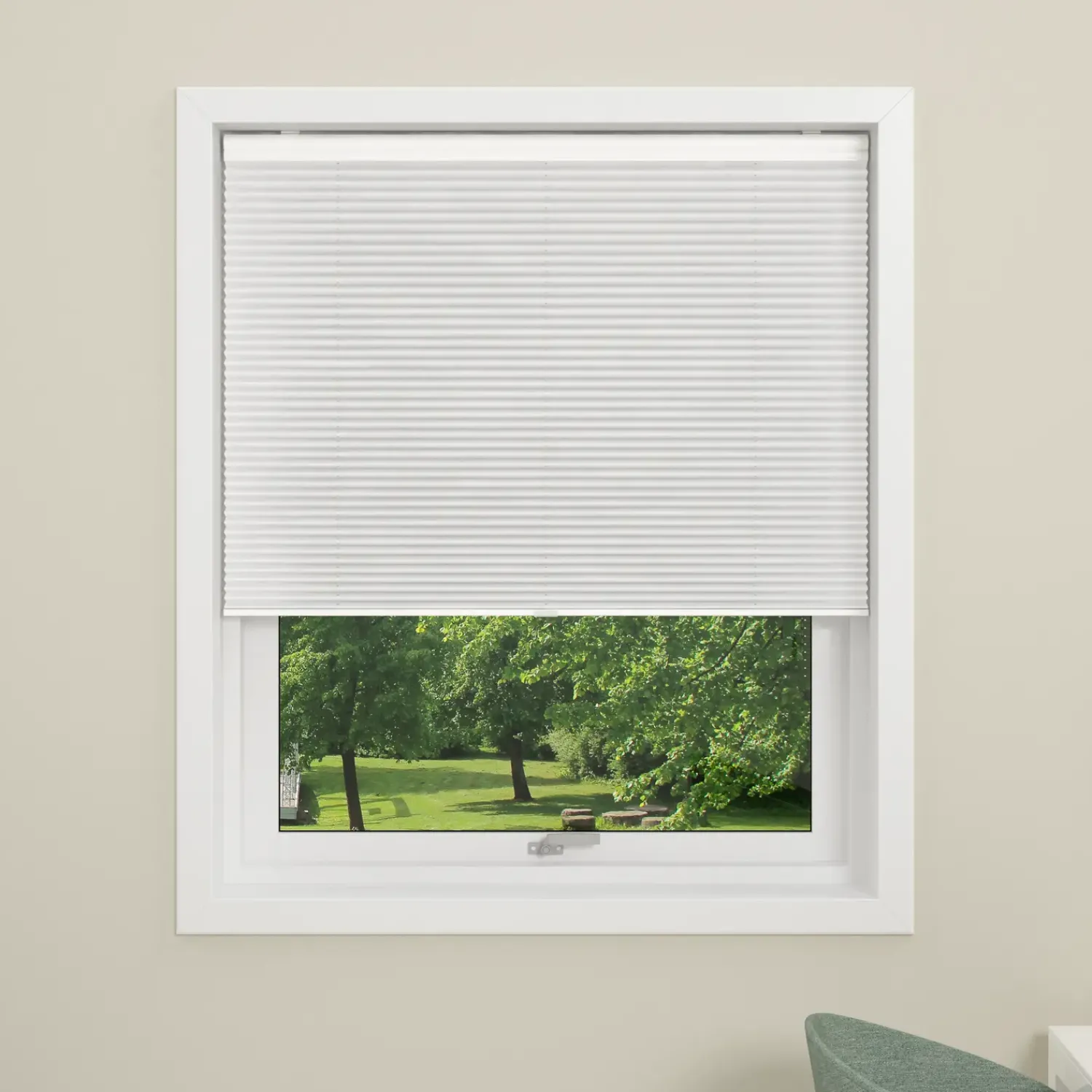 Touch LR er et plisségardin uden snorbetjening, der betjenes med et træk i greb. Plisségardinet fås i to farver.