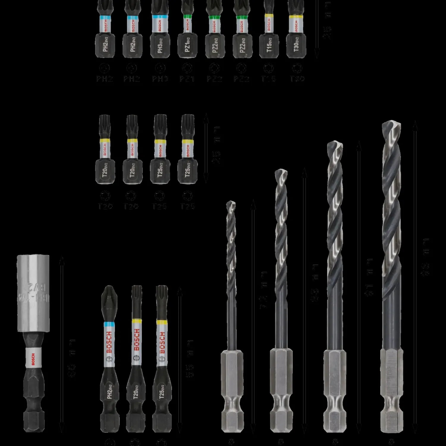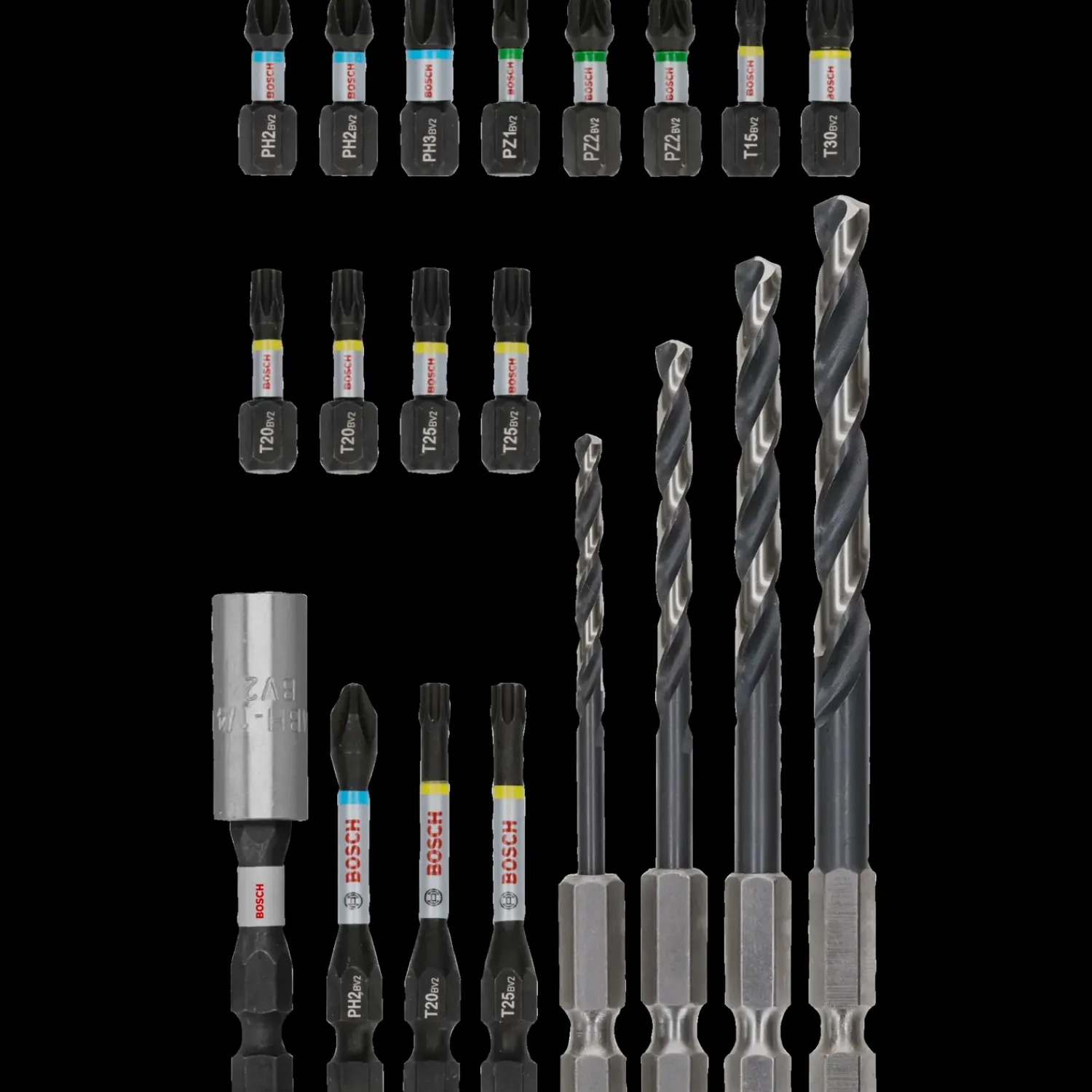 - Lasermærkede og farvekodede bits: Nem identifikation og hurtig udvælgelse