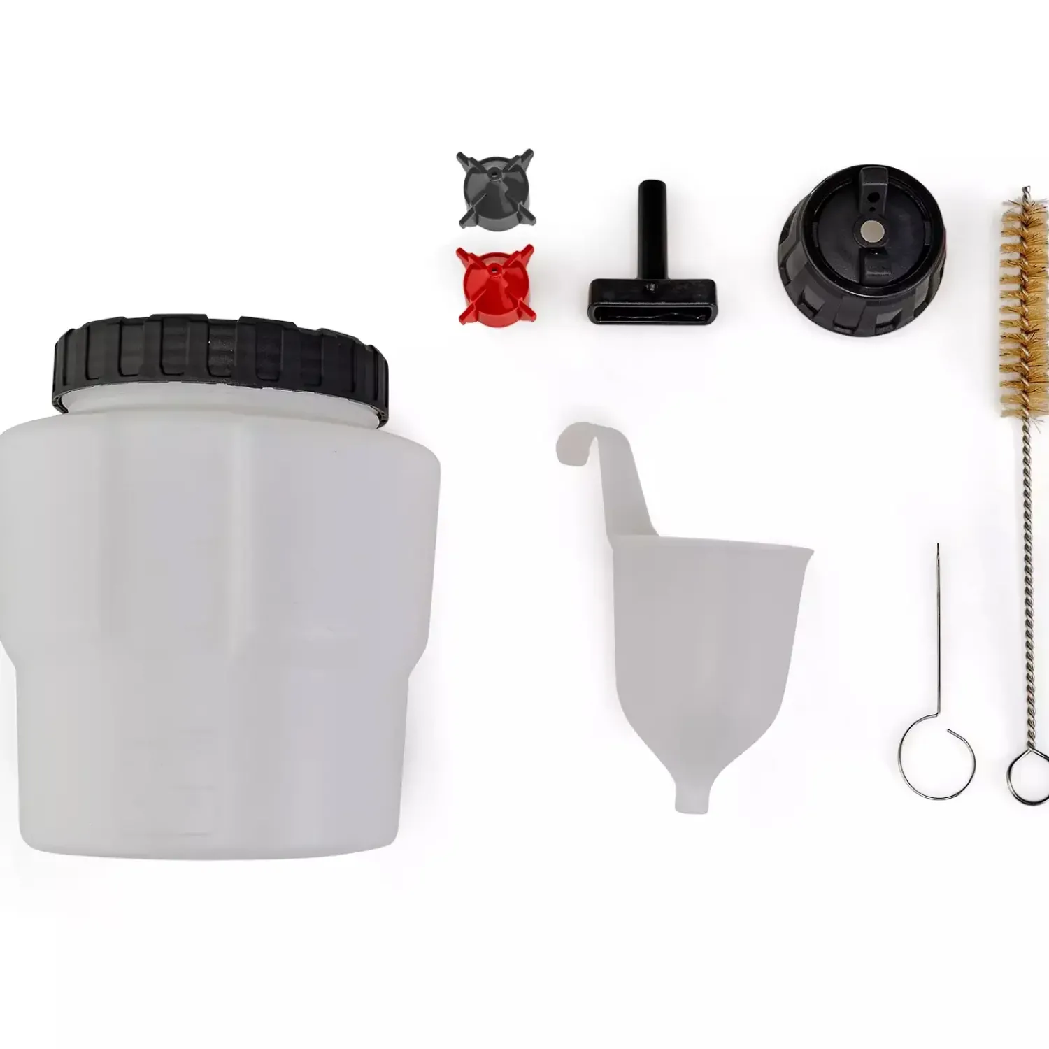 - 100 ml beholder til viskositetskontrolIndgår i Power X-Change-familienInkl. 800 ml malingsbeholder med måleskalaInkl. rengøringsbørste til rengøring af stigrøretInkl. rengøringsnål til rengøring af sprøjtedysen