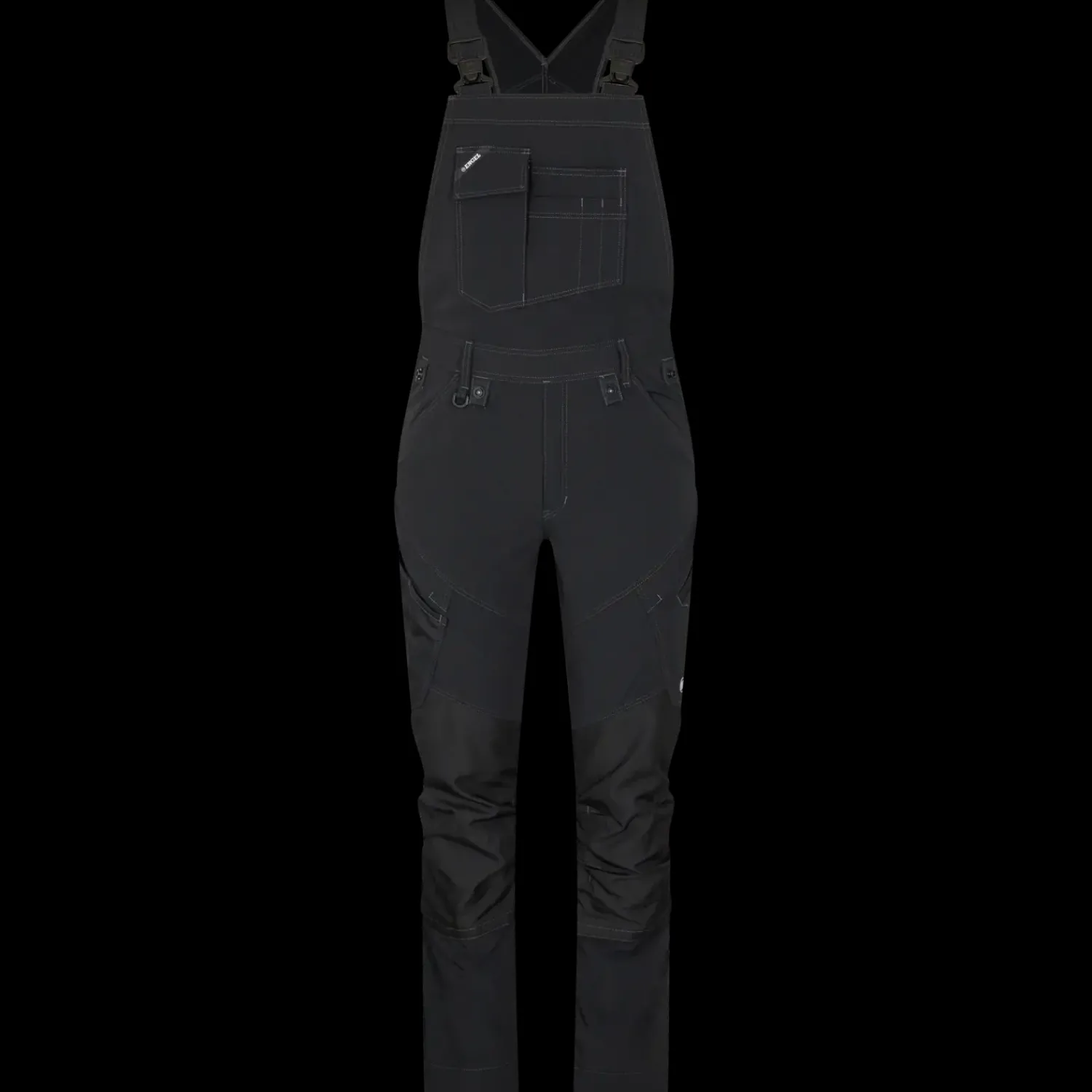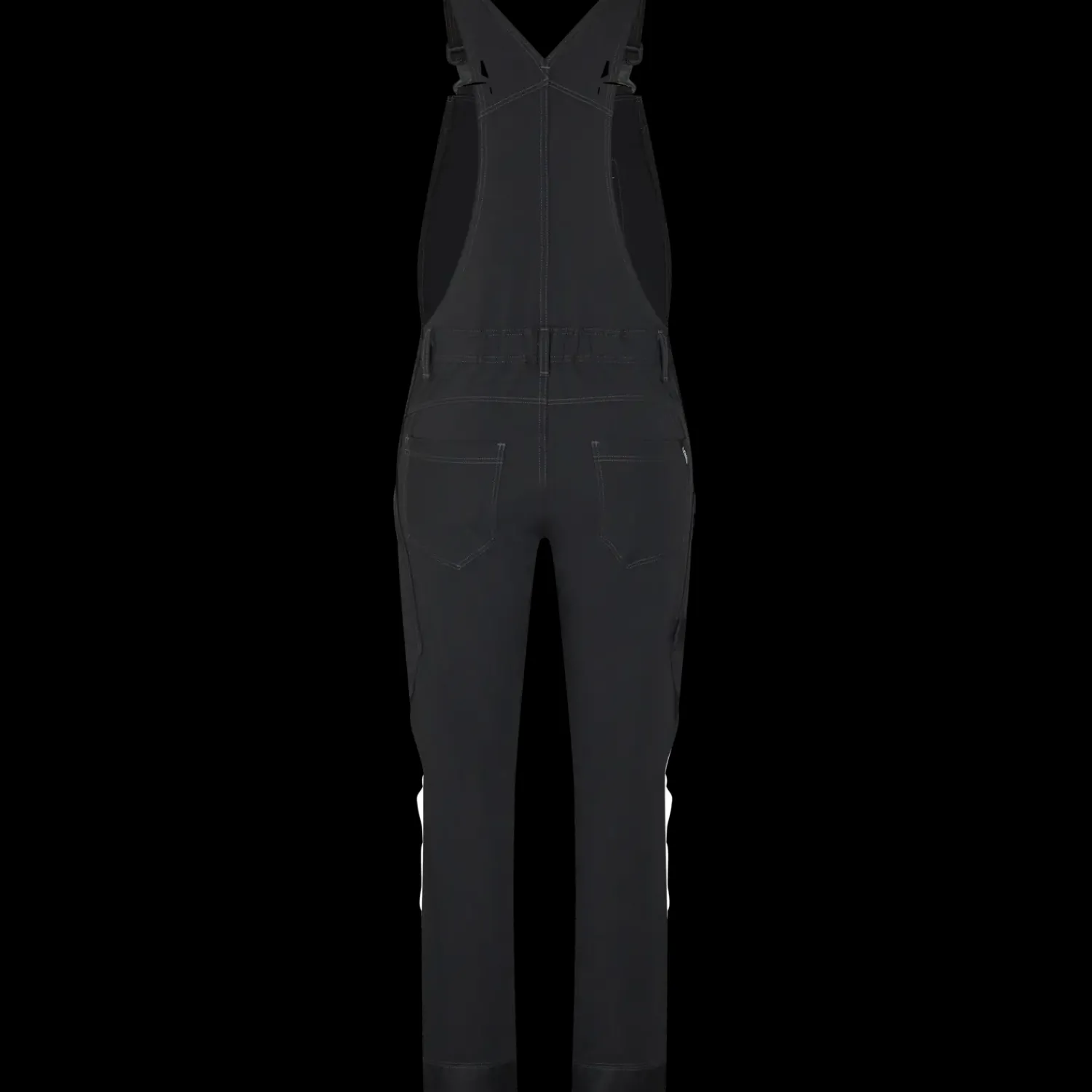 Funktionel overall med moderne pasform og mange praktiske detaljer. Optimal pasform med bl.a. ergonomisk formet knæparti. Metervaren er i en behagelig 4-vejs stræk hvor slidstyrken og åndbarheden er i top. Metervaren absorberer let sved og tørrer hurtigt så komforten bliver ekstra høj. Overallen har bred ryg i strækbart materiale. Regulerbare seler samt elastik i siderne for bedre pasform. Knapper for let og hurtig montering af hængelommer. D-ring til påsætning af f.eks. ID-kort. Smækken har skjult lynlåslomme bag på samt telefonlomme. To rummelige skrålommer foran. To baglommer. To lårlommer som lukkes med lynlås. I venstre side har lårlommen en ekstra telefonlomme. I højre side har lårlommen påmonteret tommestoklomme med ekstra inddelinger. Knæforstærkning/Knælomme i CORDURA med velcrolukning forneden samt 2 indstillingsmuligheder for knæpude. Forstærkning i bunden af buksebenene bagpå for ekstra slidstyrke. Overallen har en ekstra bred oplægning, der er beregnet til at øge længden på buksebenene, hvis der er brug for ekstra benlængde. En enkelt søm pilles op, og derefter er overallen med ekstra benlængde – og stadig sømmet op.