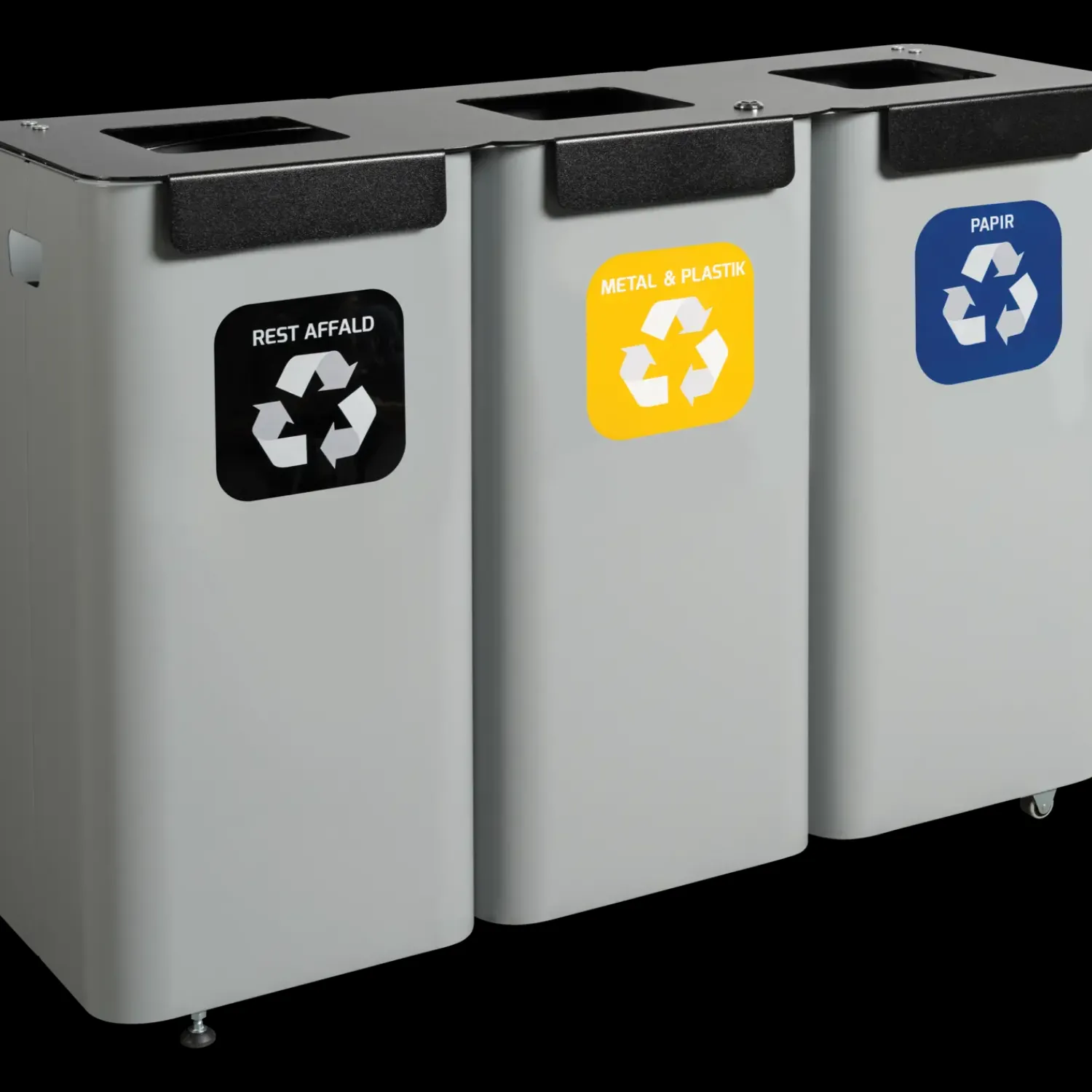 Affaldssystem til sortering fås i 2×70 liter, 3×70 liter samt 4×70 liter. Det kraftige affaldssystem har hjul i den ene ende og justerbare anti slip ben i den anden, der er håndtag så det er nemt at flytte. De kraftige hængsler holder låget åbent, så det er nemt at skifte affaldsposer. Poseholdere i stål fastholder sækkene. Nøgle følger med.