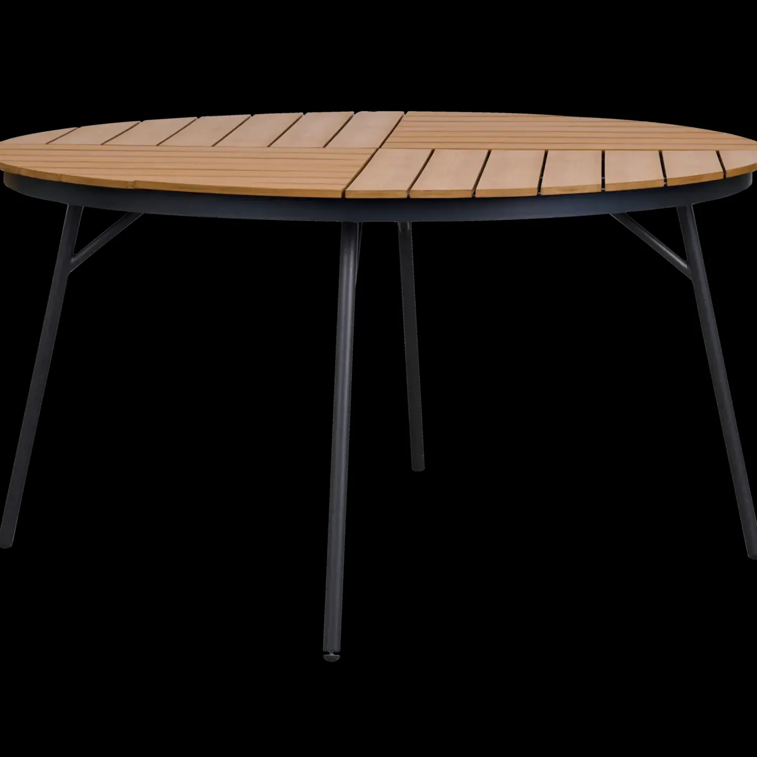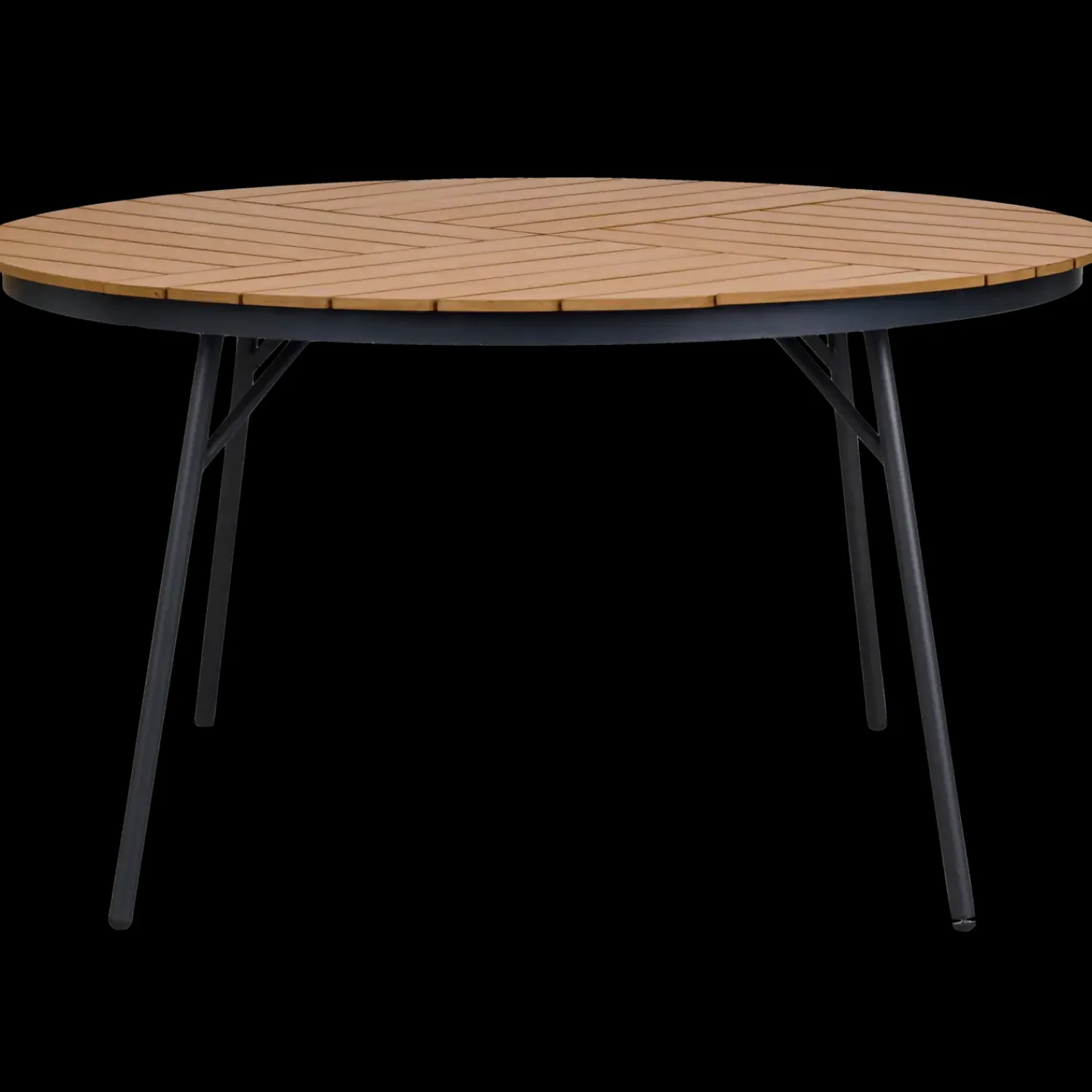 Havebord Ø138 cm med bordplade i naturfarvet nonwood. Stel i pulverlakeret stål med skråstivere i aluminium.