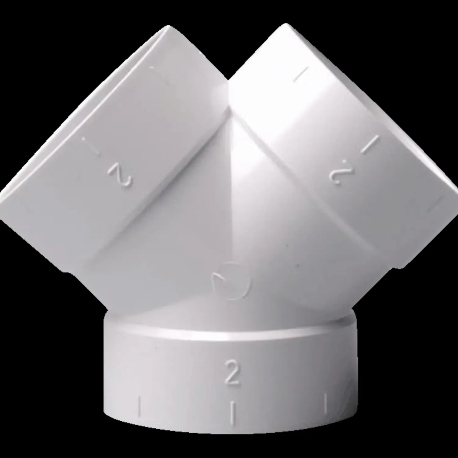 Dobbelt 45° grenrør til rørføringen på dit Nilfisk centralstøvsugersystem. Med dette dobbelt grenrør kan du samle rør der kommer fra to sugekontakter til det hovedrør der fører til din Nilfisk sugeenhed.