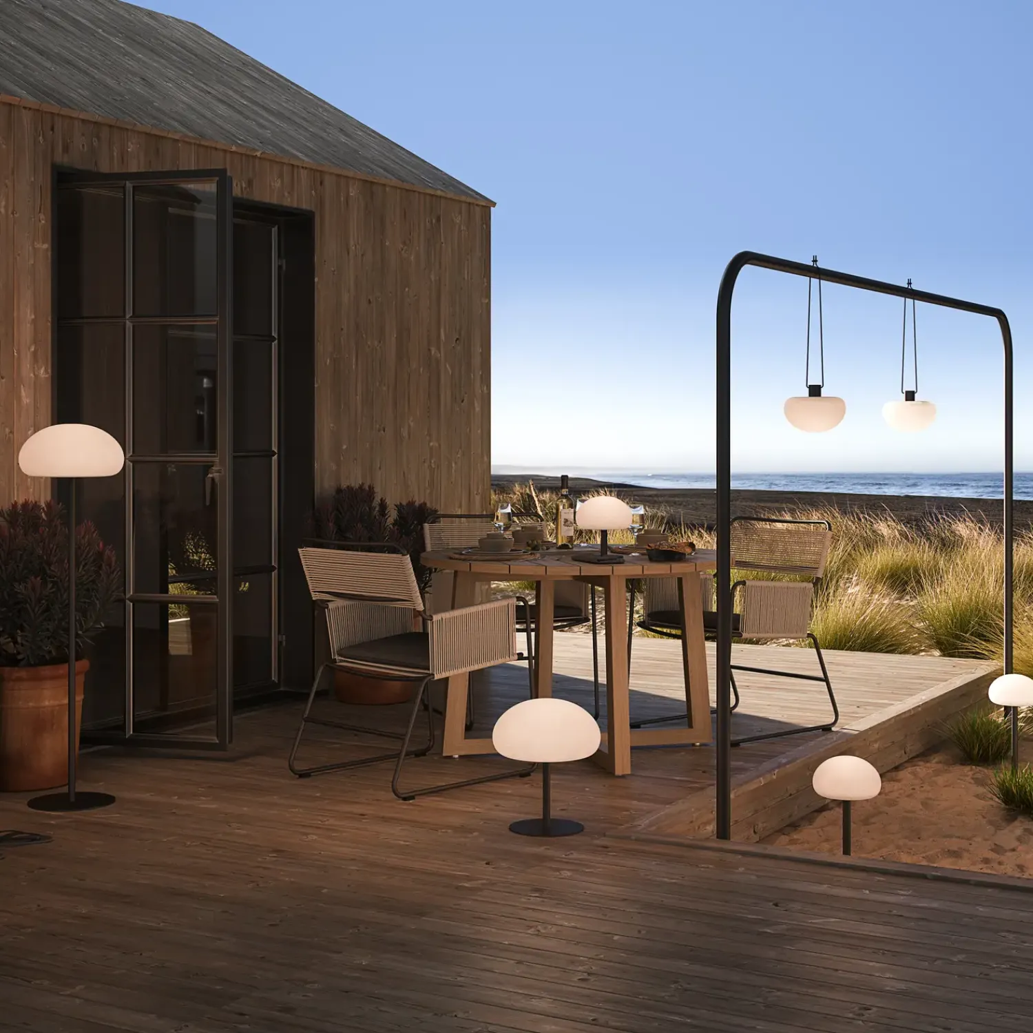 Sponge har fået sit navn efter svampe i skovbunden, hvor inspirationen til design, formsprog og udtryk også er hentet. Det simple design og bløde former gør Sponge til en utrolig elegant serie, som er velegnet inde som ude. Med det indbyggede batteri kan Sponge placeres og flyttes, som du vil, og samtidigt kan lysstyrken indstilles i tre niveauer. Batteriet har en holdbarhed på op til fem timer ved fuld kraft og endnu længere, hvis der skrues ned til hyggebelysning. Batteriet oplades nemt via det medfølgende USB-stik. Mulighederne er mange med denne smukke lampe. Sponge To Go inviterer til, at man løfter den op og tager den med sig, hvor end man ønsker. Brug den udenfor på altanen, tag den med på skovtur eller skab en hyggelig belysning indenfor i stuen. Sponge To Go er fremstillet i hård plast, og er holdbar overfor vind og vand.