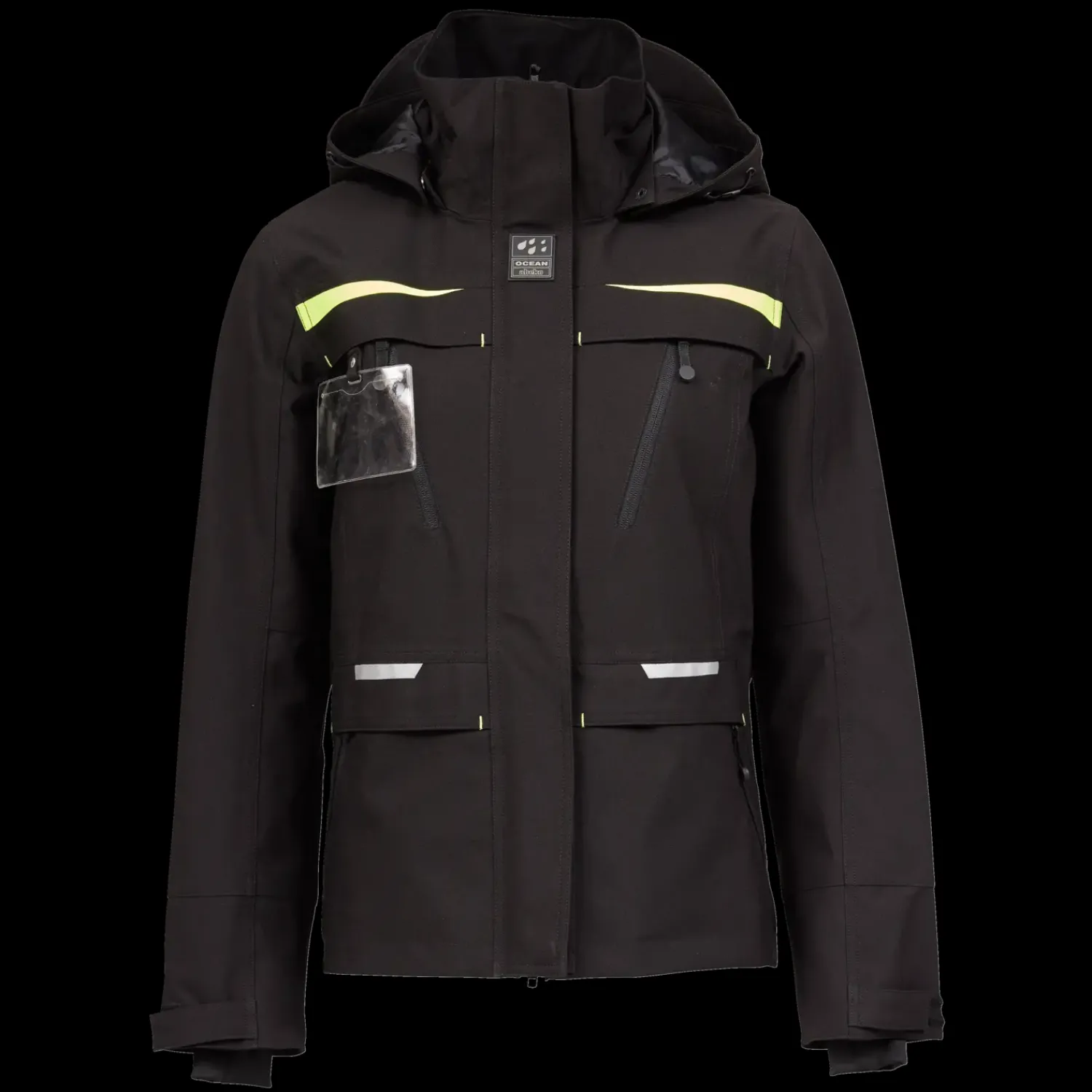 Rocky Stretch fra Ocean er en funktionel og komfortabel arbejdsjakke i kraftigt 4-vejs stretch materiale. Sømmene er dobbeltsyede og tapede for optimal vandtæthed. YKK® lynlås og dobbelt overfald i front med knap- og velcrolukning. Dens brystlommer er med lynlås, og aftagelig ID-lomme samt D-ring i front. To skrålommer med lynlås samt en aftagelig og justerbar hætte. Jakken har velcrojusterbare manchetter med indvendig håndledsfor, og en velcrojustering i livet. Denne åndbare Ocean dame-regnjakke kan holde dig tør hele dagen, mens den samtidig er komfortable at have på.