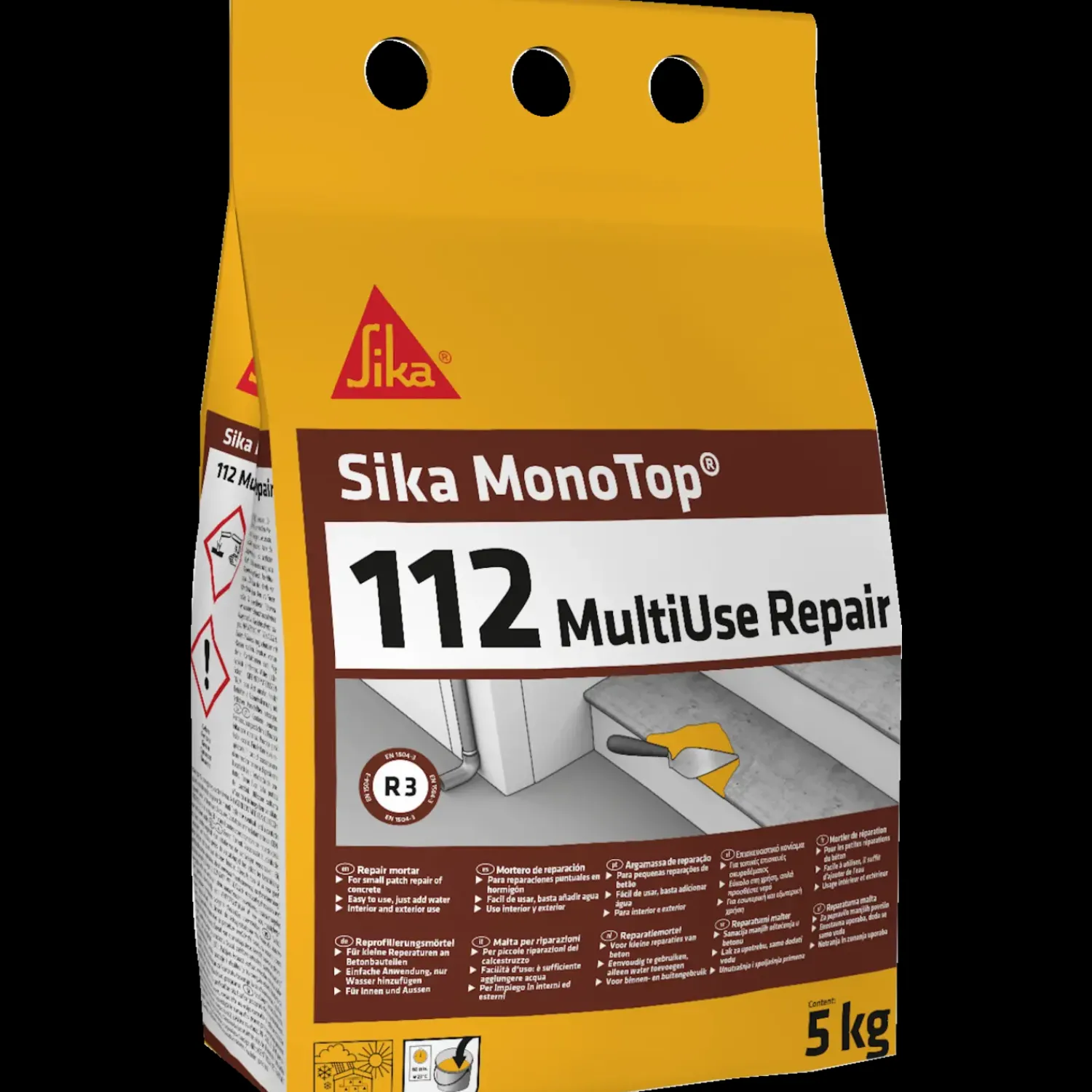 Sika MonoTop-112 MultiUse repair er Reparations mørtel til beton af høj kvalitet. Denne mørtel er cementbaseret, thixotropisk med udvalgte tilslag og indhold af syntetiske fibre. Nem at påføre og har en god vedhæftning til de mest almindelige byggematrialer som beton, sten, mursten og stål. Den er hurtig at blande og kræver kun tilsætning af vand.